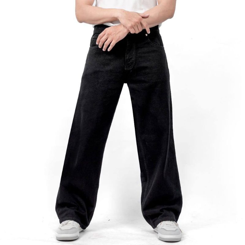 terlaris Celana Jeans Pria Baggy Jeans Loose Oversize Gombrong Lebar Skena Black Wishker celana jeans pria