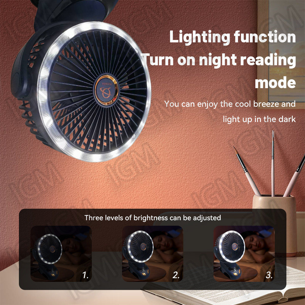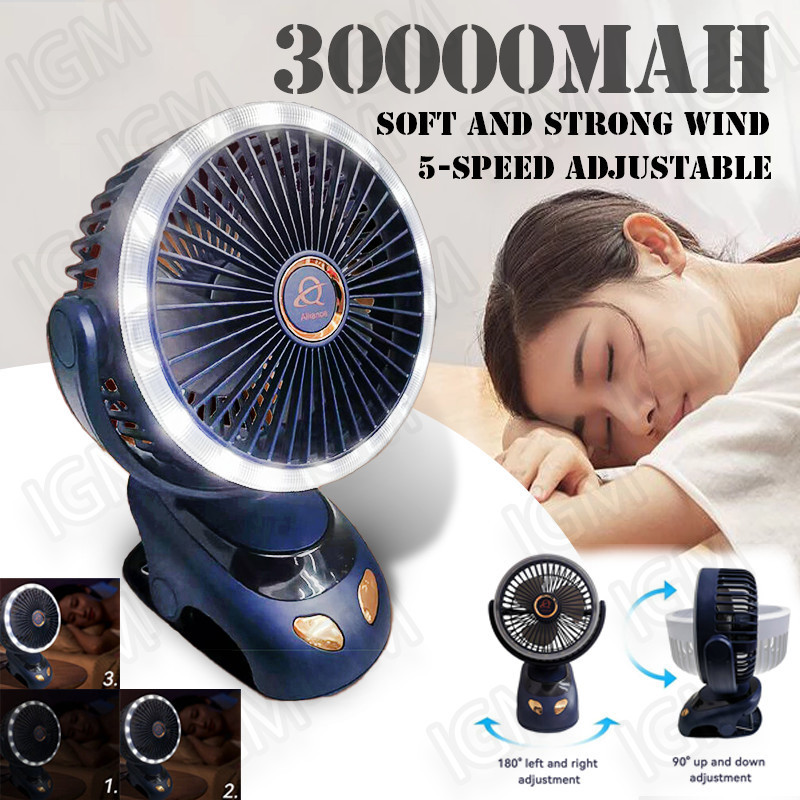 [ ] 30000mAh Klip Kipas Kipas USB Portabel Isi Ulang Kipas Mini Listrik Dengan Tampilan Digital LED & Cahaya 90 ° Putar Lampu LED Kipas Berdiri Kecil Fan