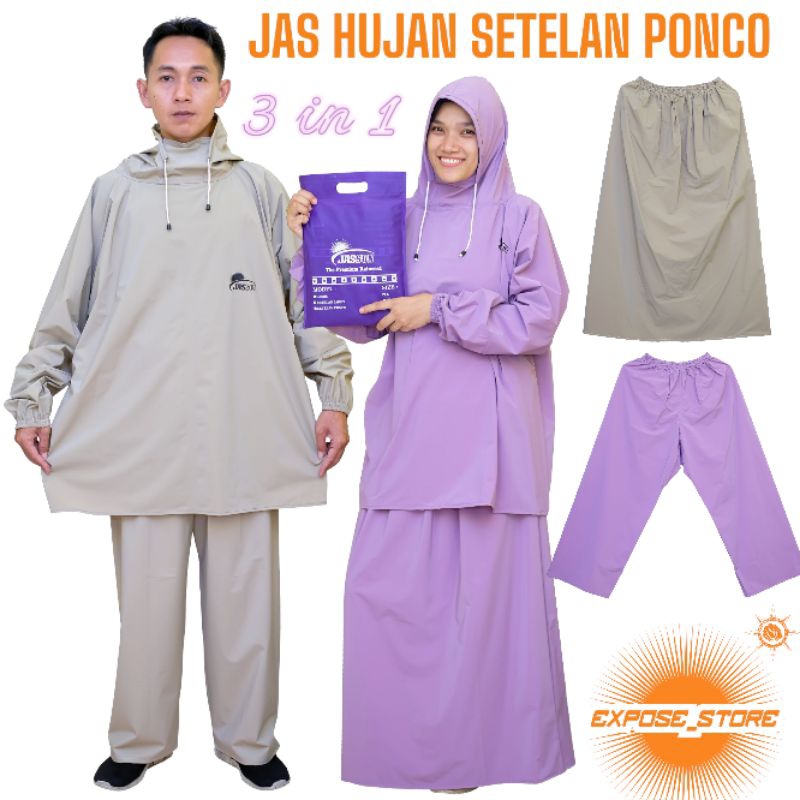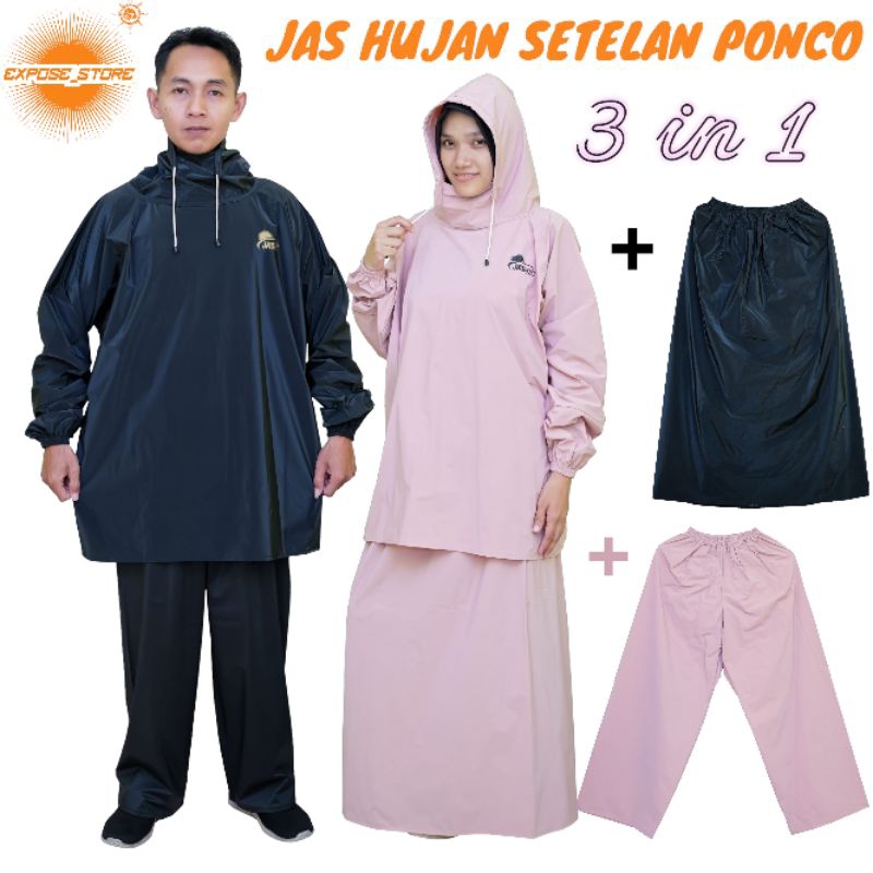 Jas Hujan Setelan Ponco+ Celana+ Rok ,Pria Wanita Bahan pvc waterproof Kuat Lentur Dan anti Rembes