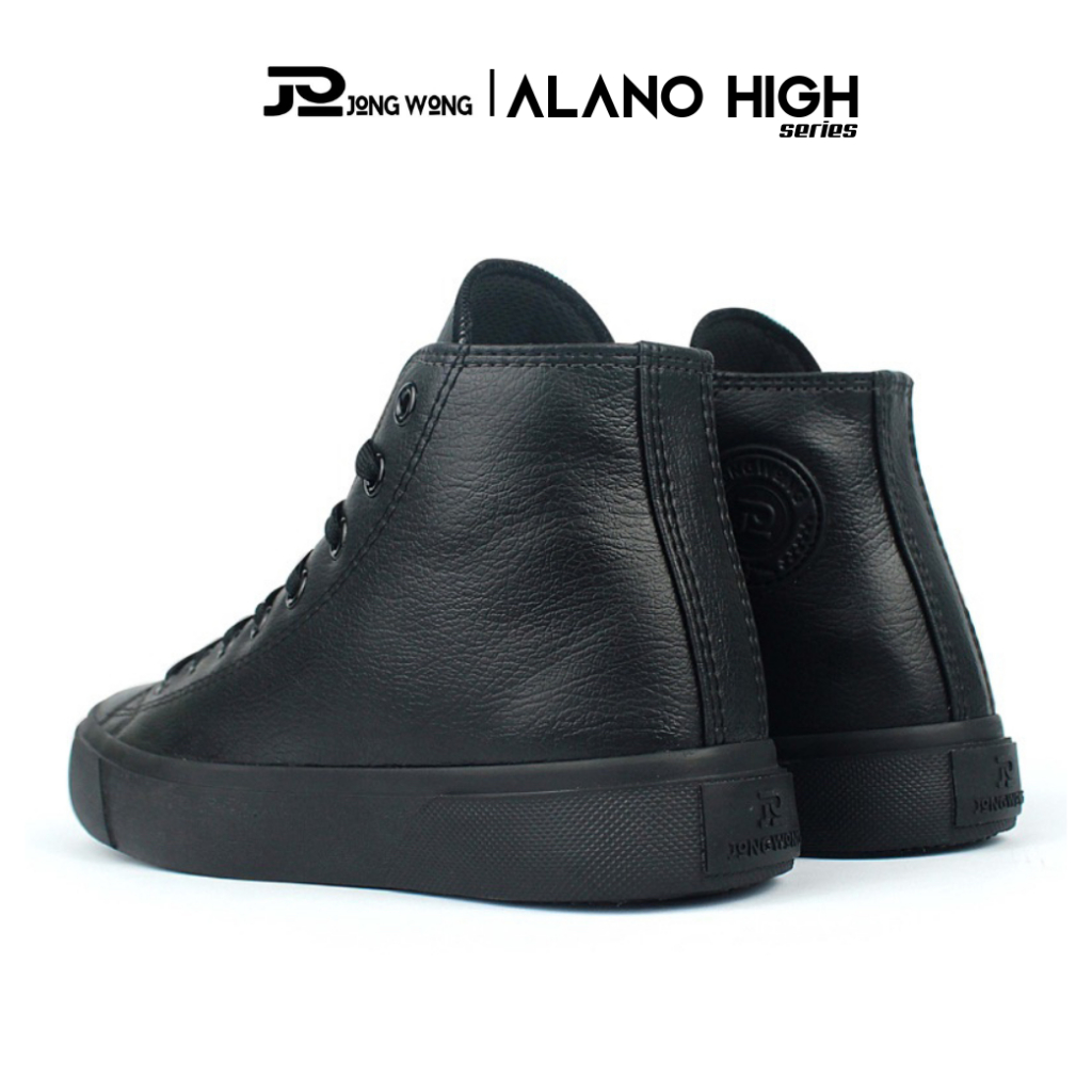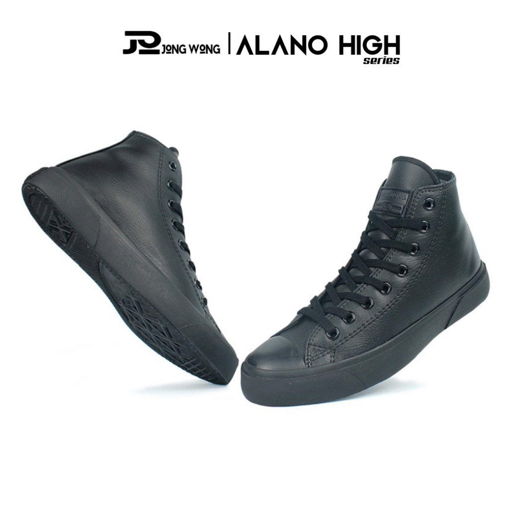 Jong Wong Official - Original Alano Full Black High | Sepatu Sneakers Kulit Casual Pria Wanita