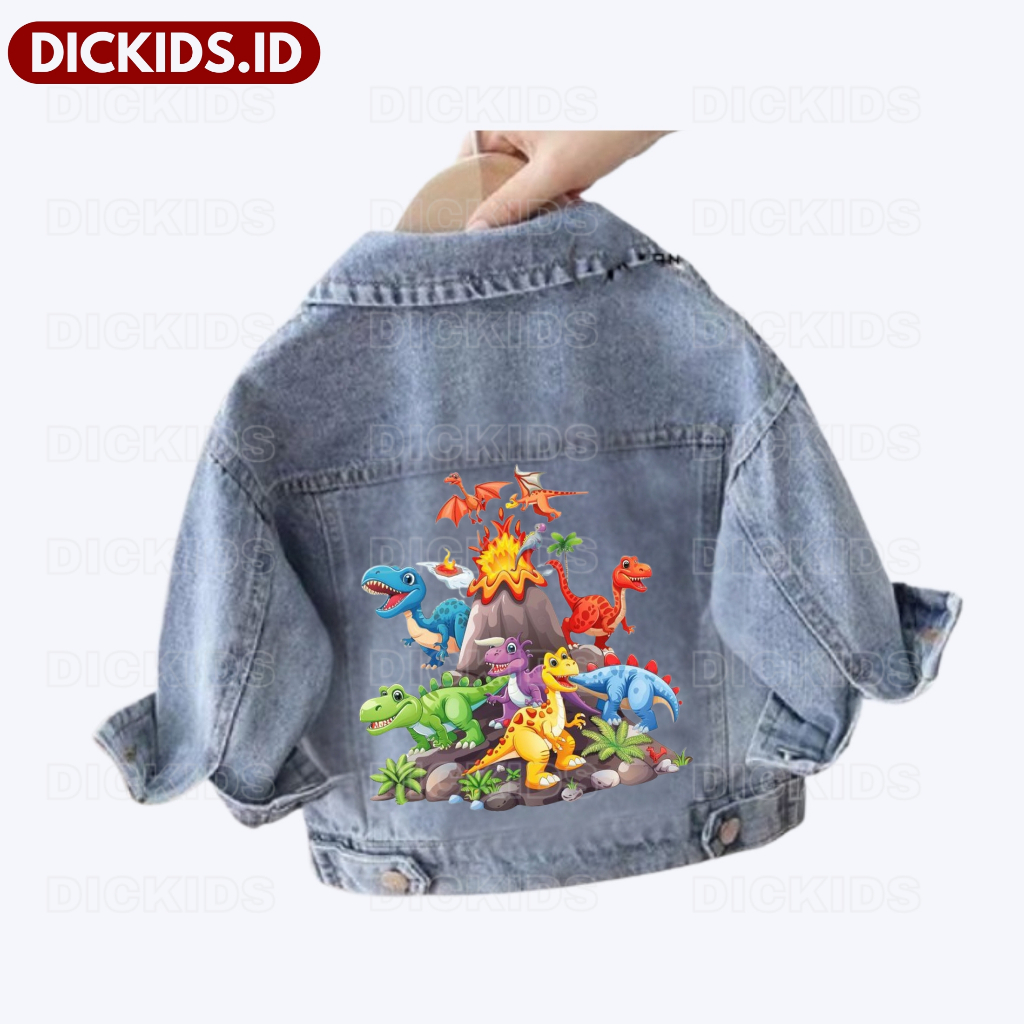 Jaket Jeans Anak Dino Karakter Usia 1 - 7 Tahun Snow Blue & Snow Black