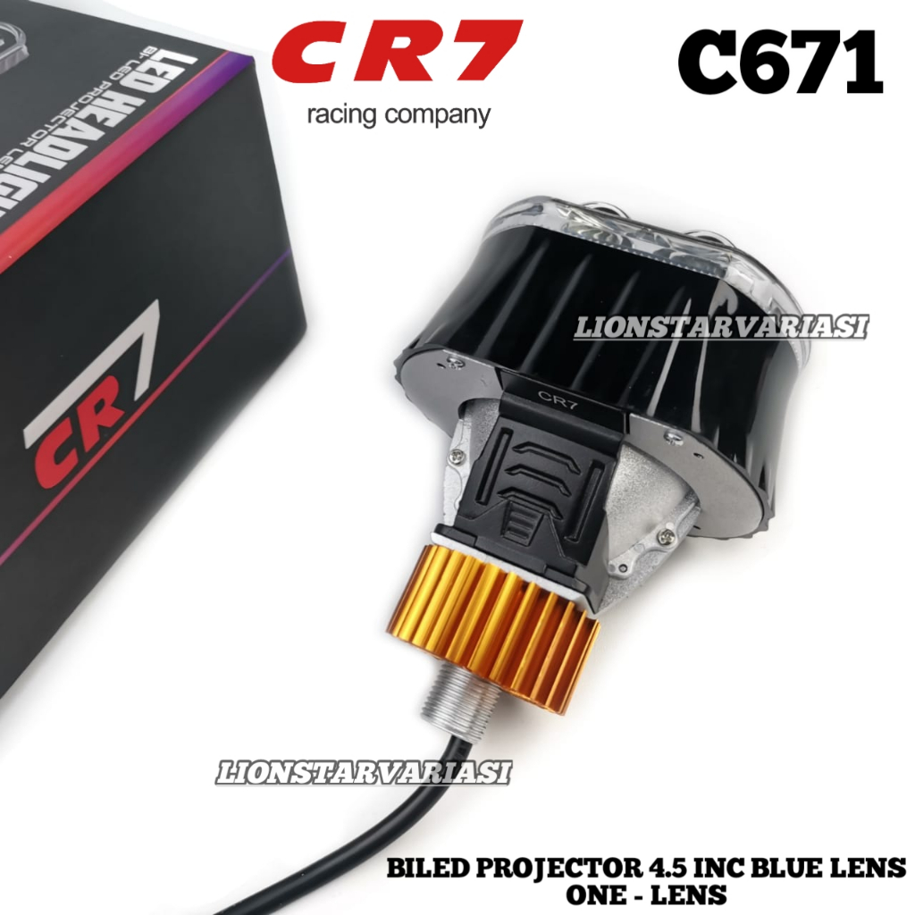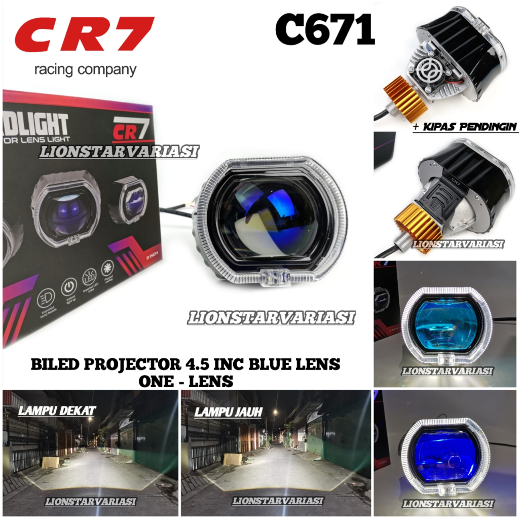 CR7 C671 - Biled Projector 4.5 Inch Blue Lens Plus Devil Shroud High Low Flat Cut Ngedim Motor Mobil