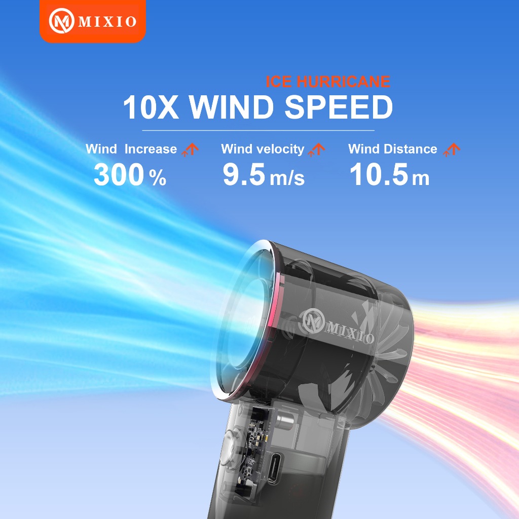 MIXIO GS-03 Mini kipas Strong Wind 100 Gear Wind Speed kipas angin Digital Display Adjustable Turbo kipas tangan untuk olahraga luar ruangan dan pendinginan cepat