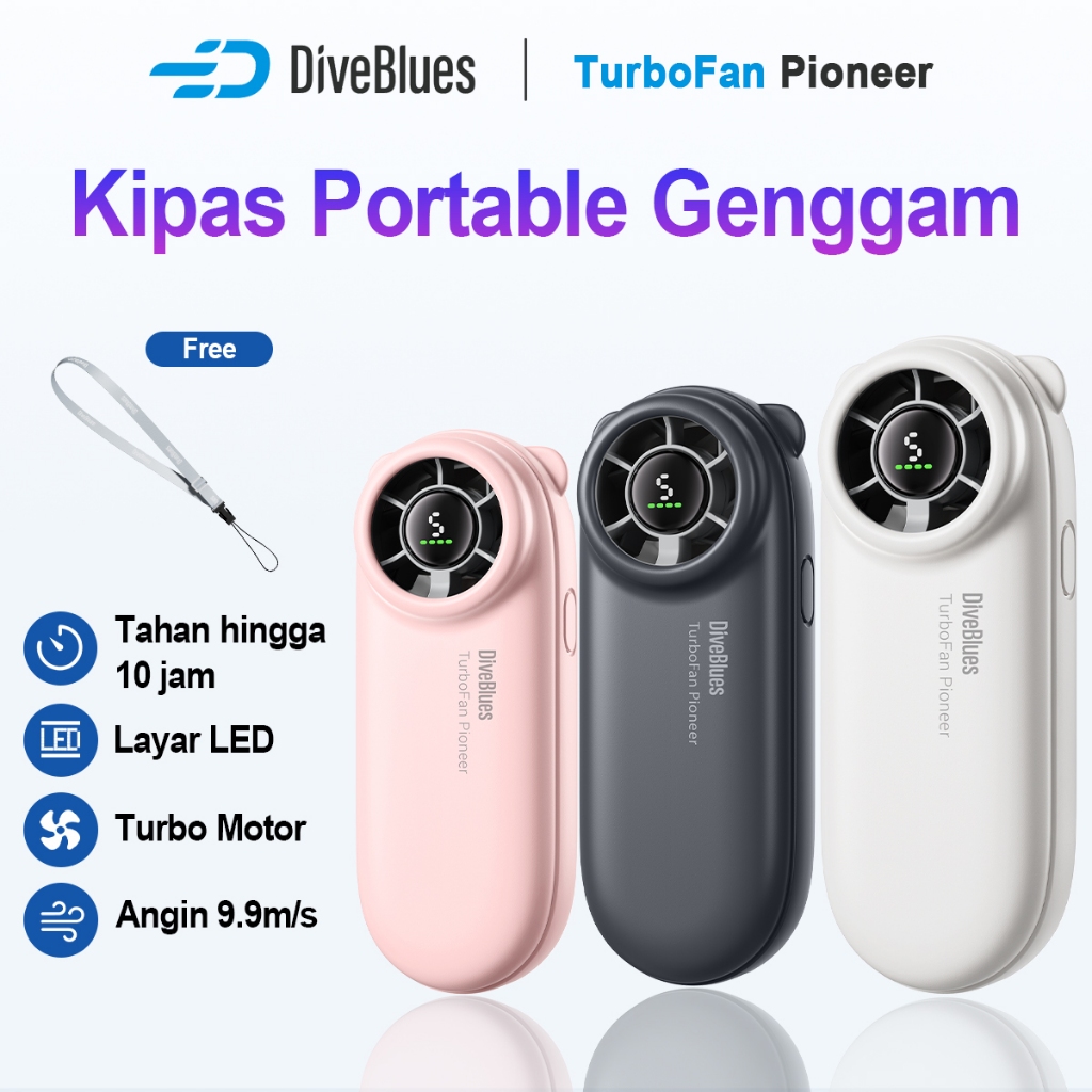Diveblues Kipas Angin Portable 5 Speed digital display adjustable High-speed 19500RPM Kipas Genggam