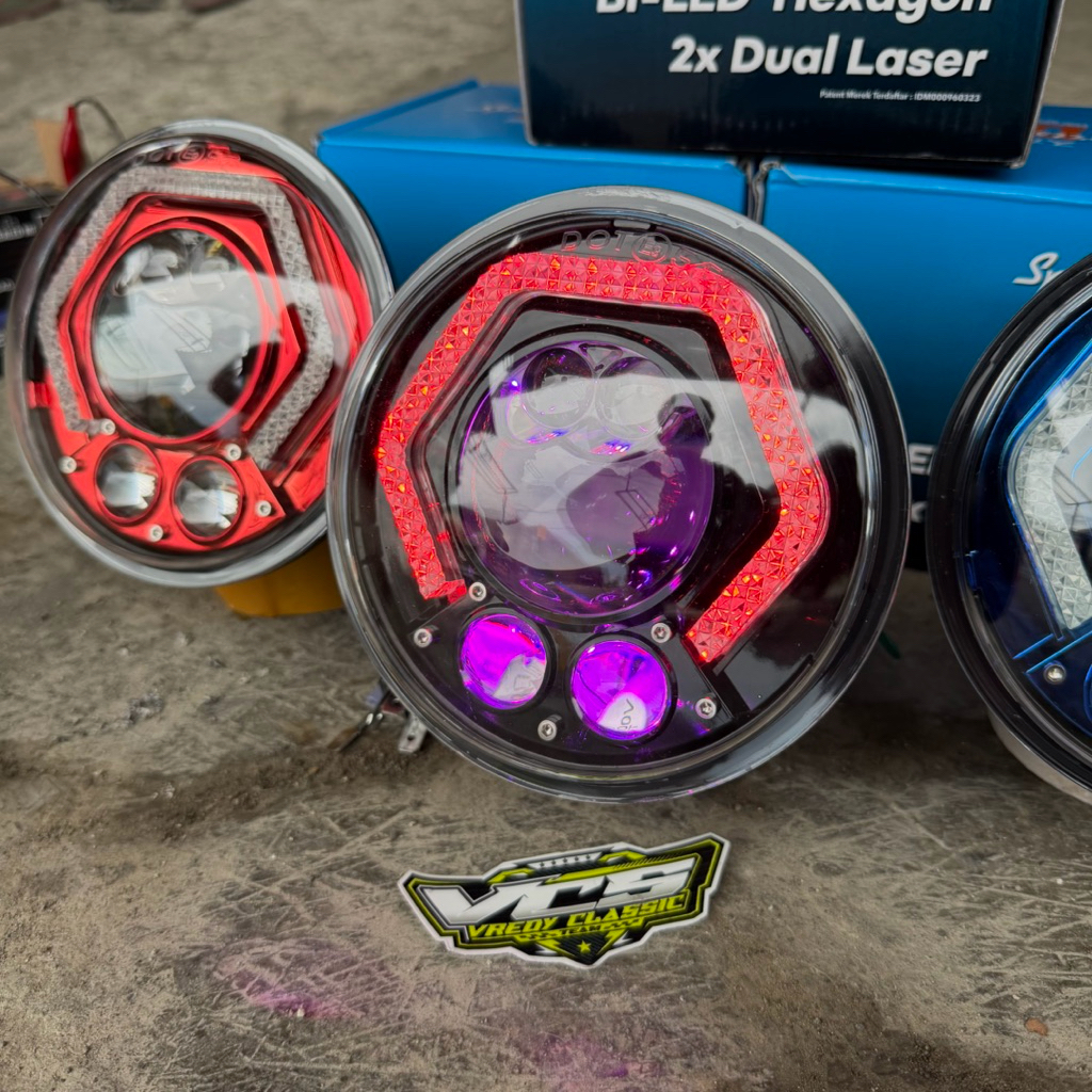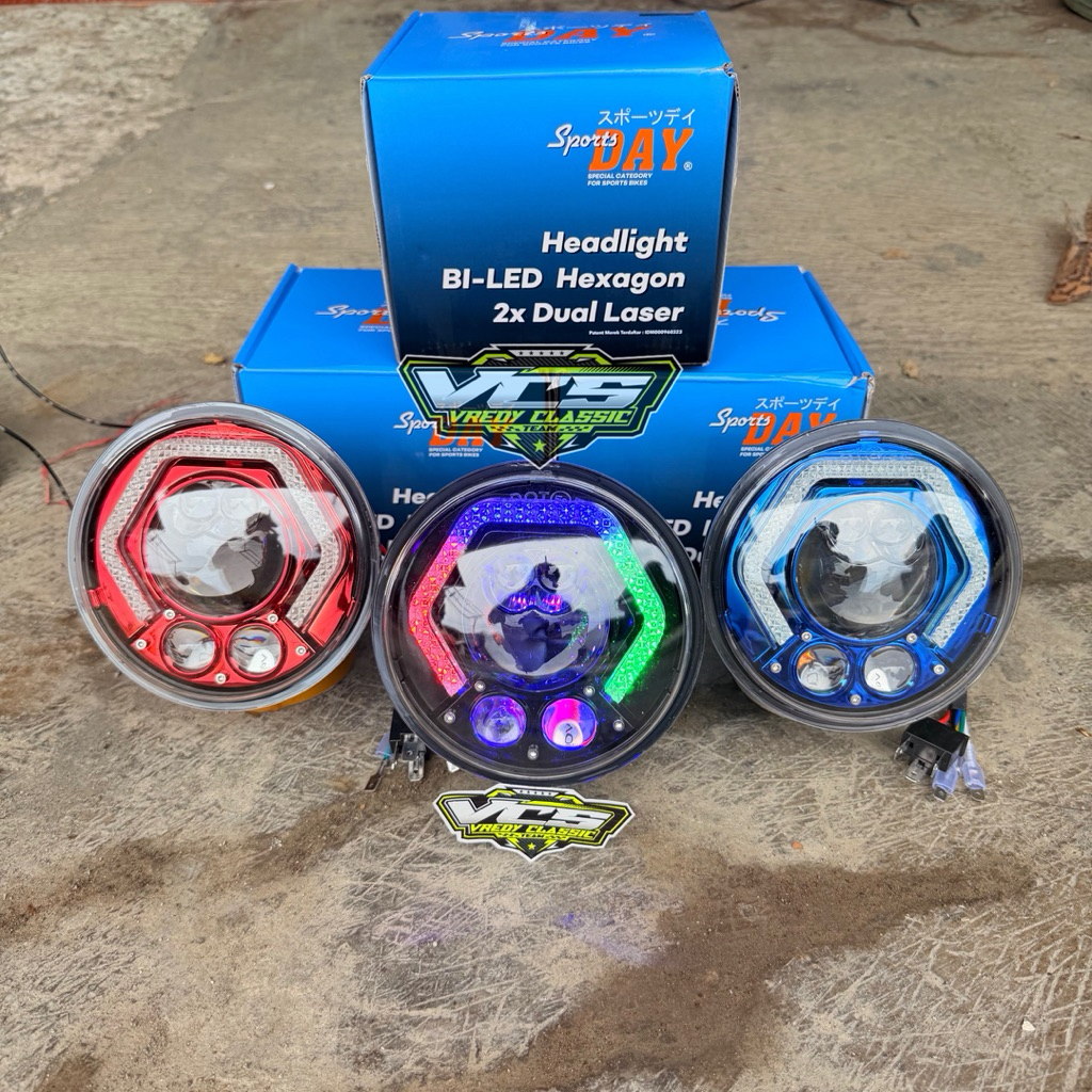 biled DAY biled dual laser RGB shroud HEXSAGON OVAL 5INCH pnp batok CD YL CB125 GL100 VAN VAN BILED terbaru day HEXSAGON dobel laser