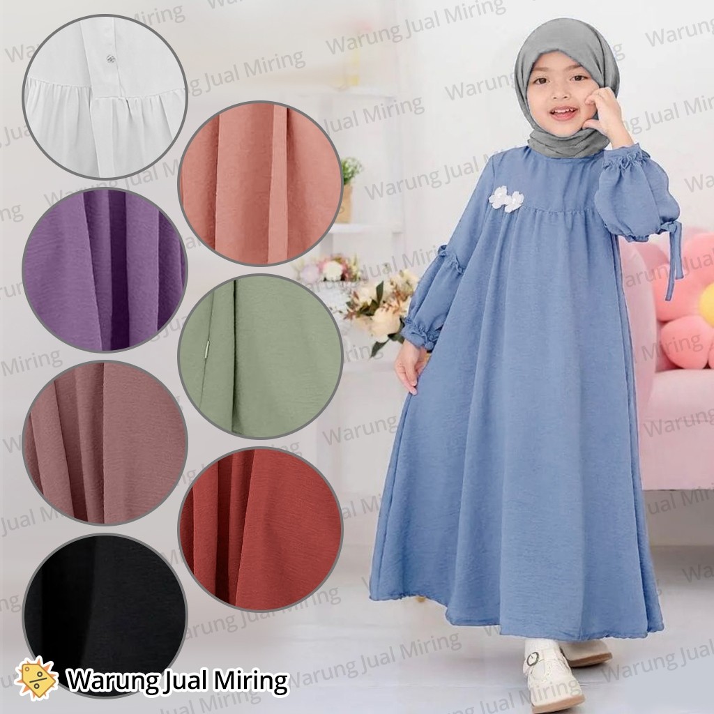 Gamis Abaya Anak Perempuan 2-12 Tahun Crinkle Airflow Dress Sakura Baju Mu Cewek Lebaran Pesta Manasik Warna Polos Putih