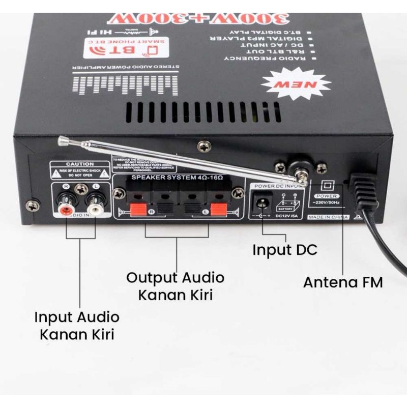 Amplifier Wireless Bt 5.0 Kerndy Bt-198E Echo 300W+300W Amplifier Echo Karaoke Bluetooth