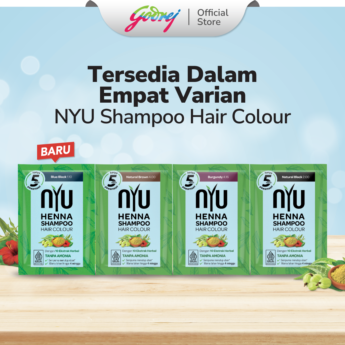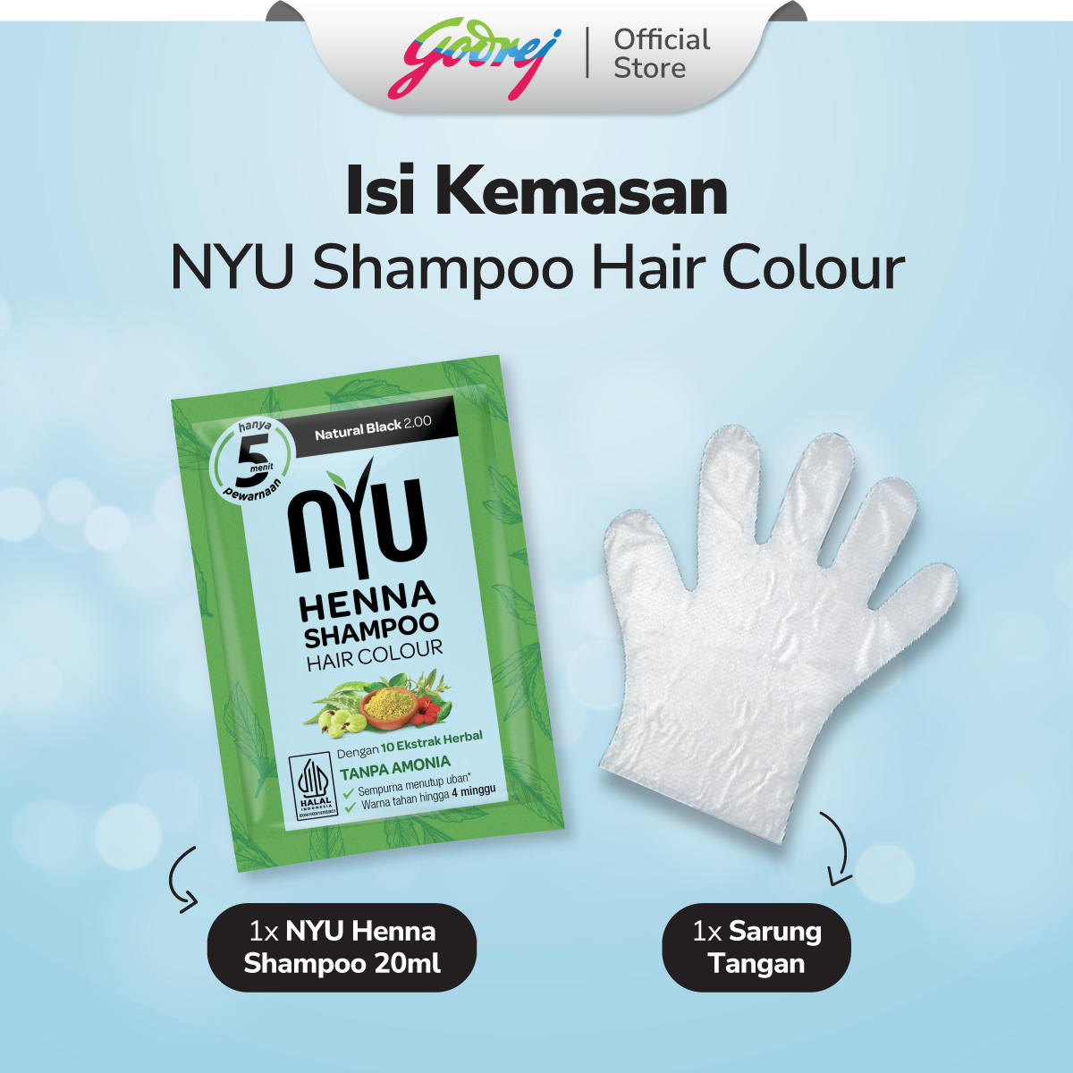 NYU Henna Shampoo Hair Colour Natural Black - Sampo Pewarna Rambut - Box Set