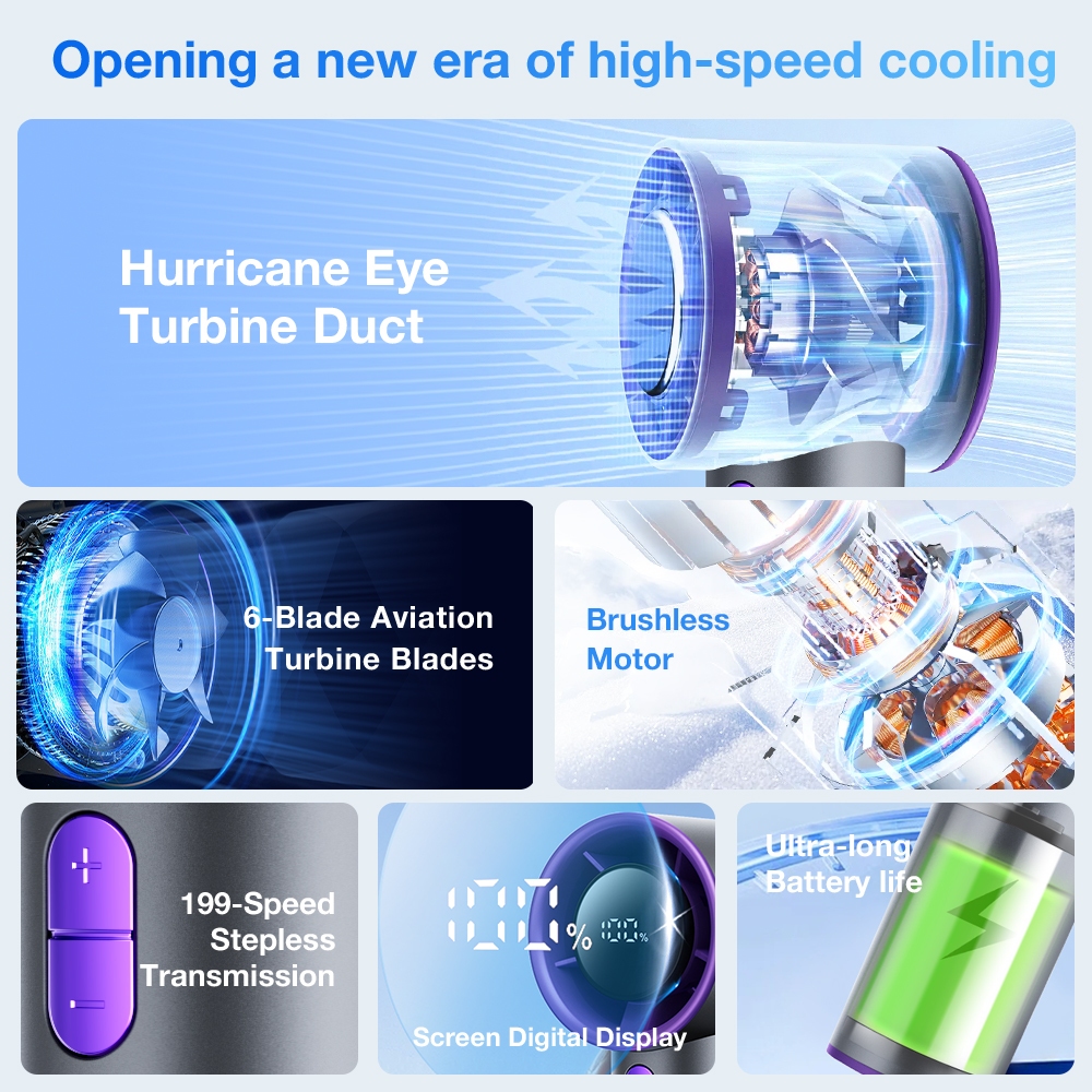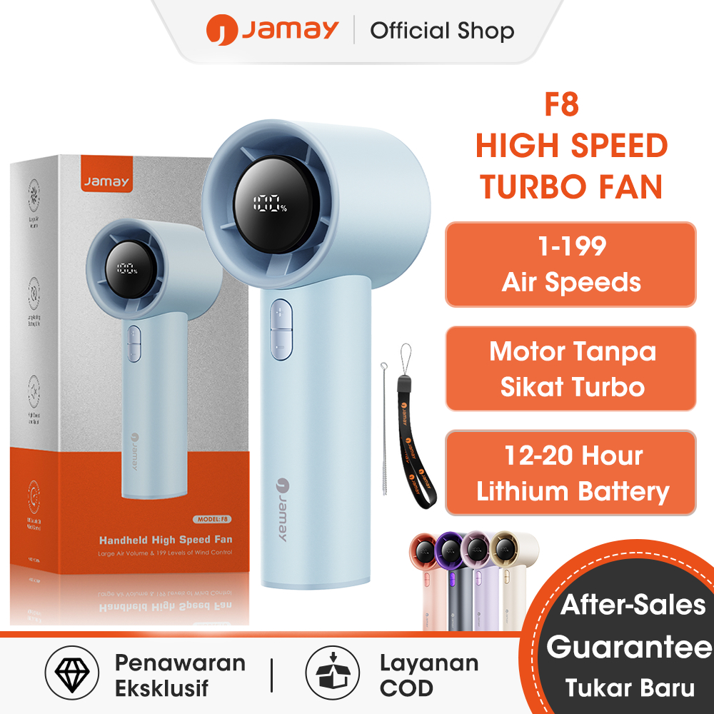 Jamay Portabel Kipas Angin Strong Wind 199 Gear Wind Speed High-Speed Handheld Mini Kipas Digital Display Adjustable Turbo Kipas Tangan Untuk Olahraga Luar Ruangan dan Pendinginan Cepat F8