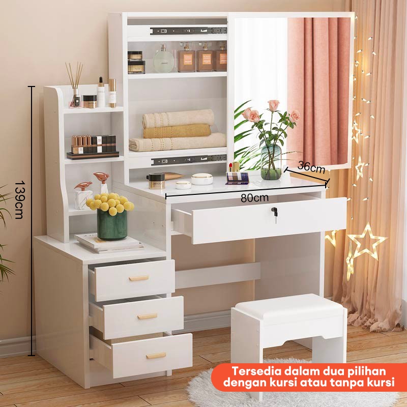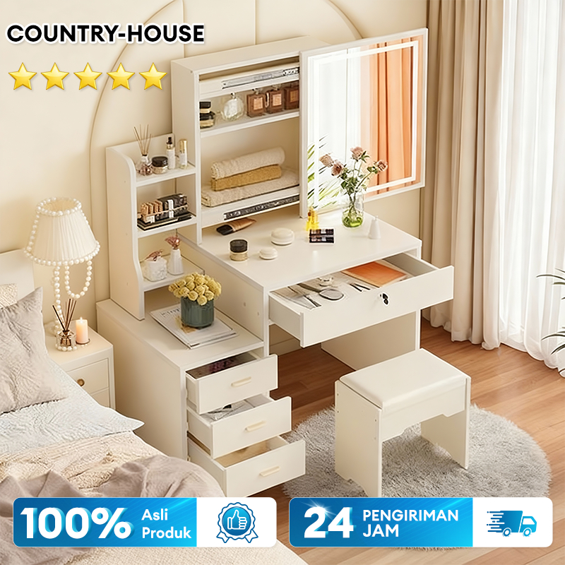 COUNTRY-HOUSE Meja Rias Aesthetic Set Kursi Meja Rias Led Meja Rias Minimalis Meja Rias Sliding