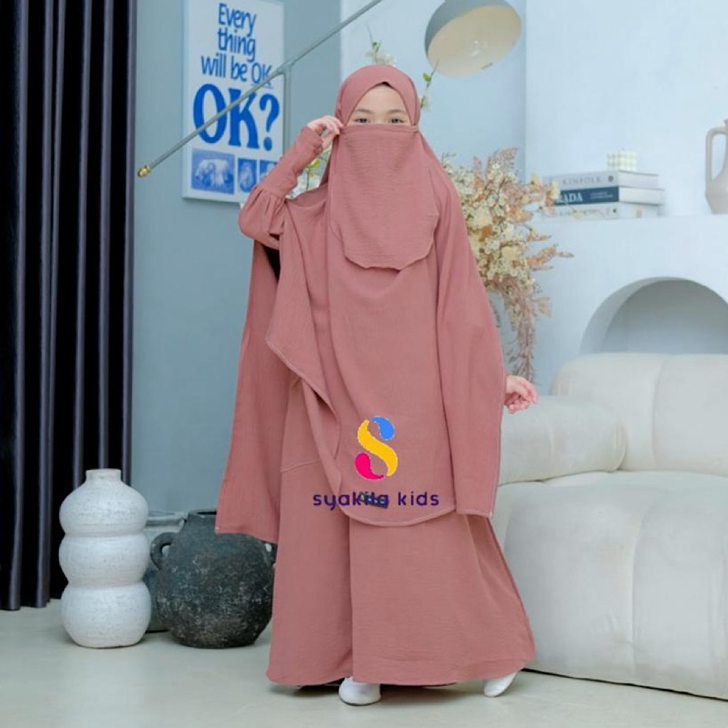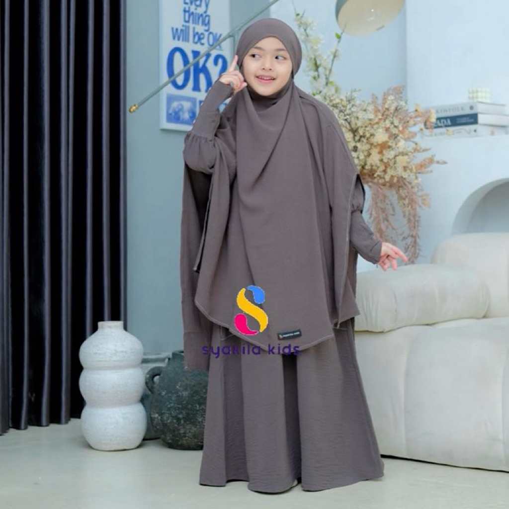 Syakila Kids.Larissa Set Gamis Anak Syar’i Fk Handsplit Untuk Usia 1-12 Tahun