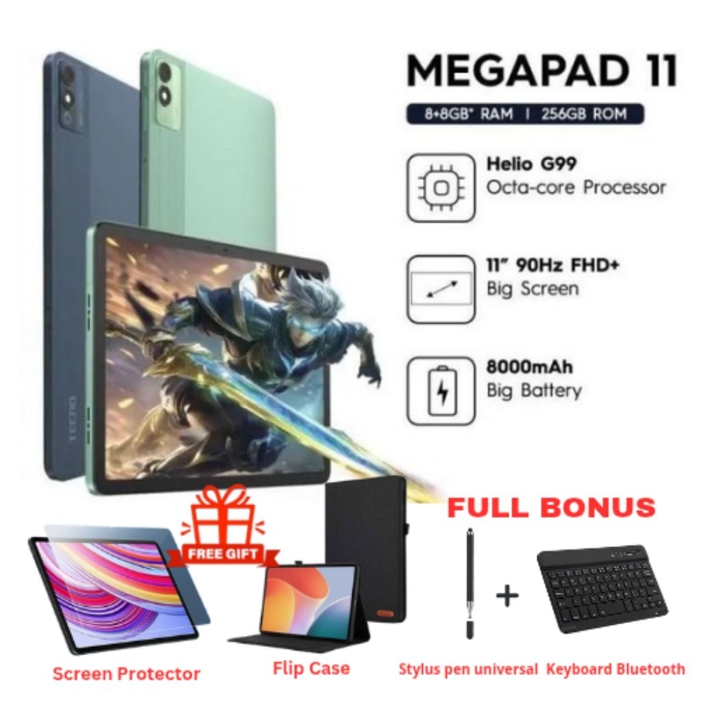 TAB TECNO MEGAPAD 8/256 TABLET TECNO MEGAPAD 11INCH BATERAI 8.000MAH HELIO G99 GARANSI RESMI