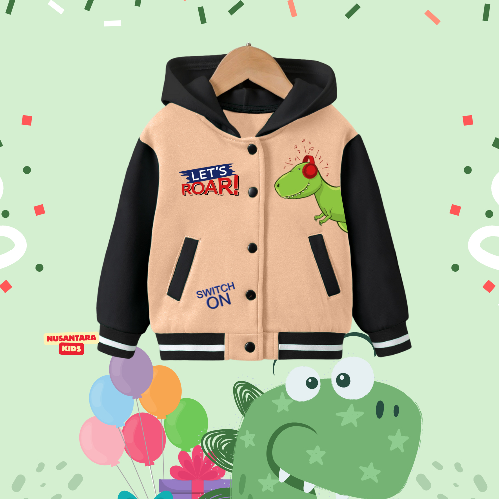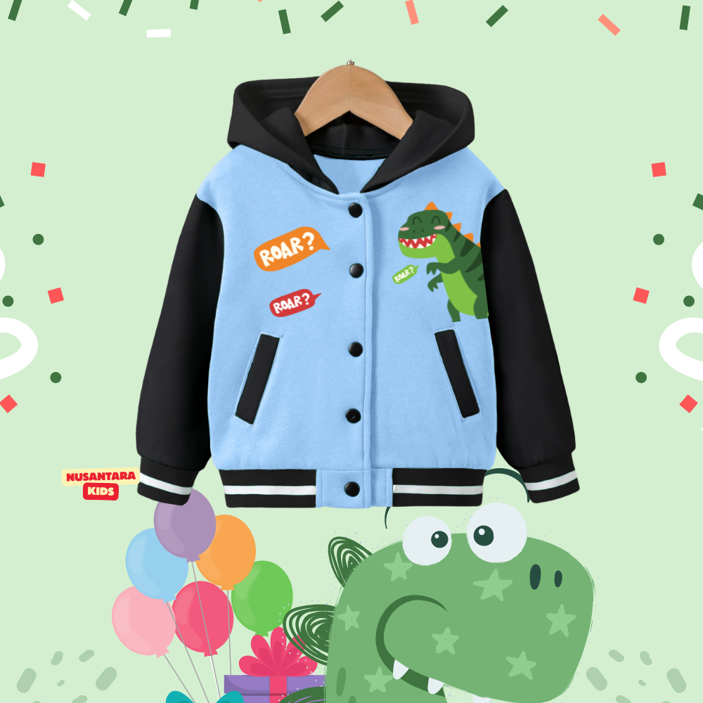 Jaket Anak Varsity Hoodie Dino Usia 2-12 Tahun