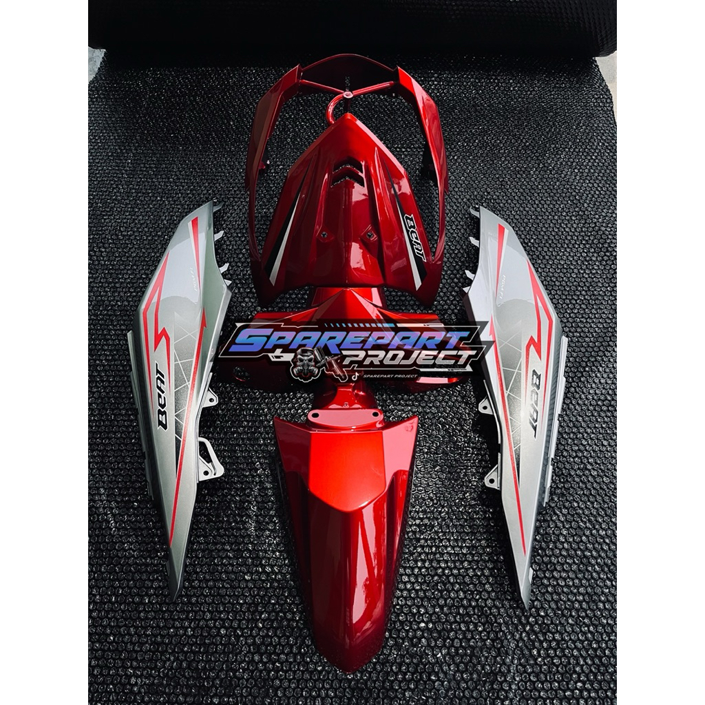 full set cover Body halus Honda Beat fi tahun 2013-2015 warna merah grey + Striping Vietnam style 🇻🇳