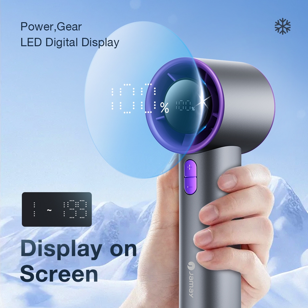 Jamay Kipas Angin Portable Mini Kipas Kencang Strong Wind 199 Gear Turbo Fan Digital Display Adjustable Kipas Tangan High-Speed Kipas Portabel Pendinginan Cepat F8