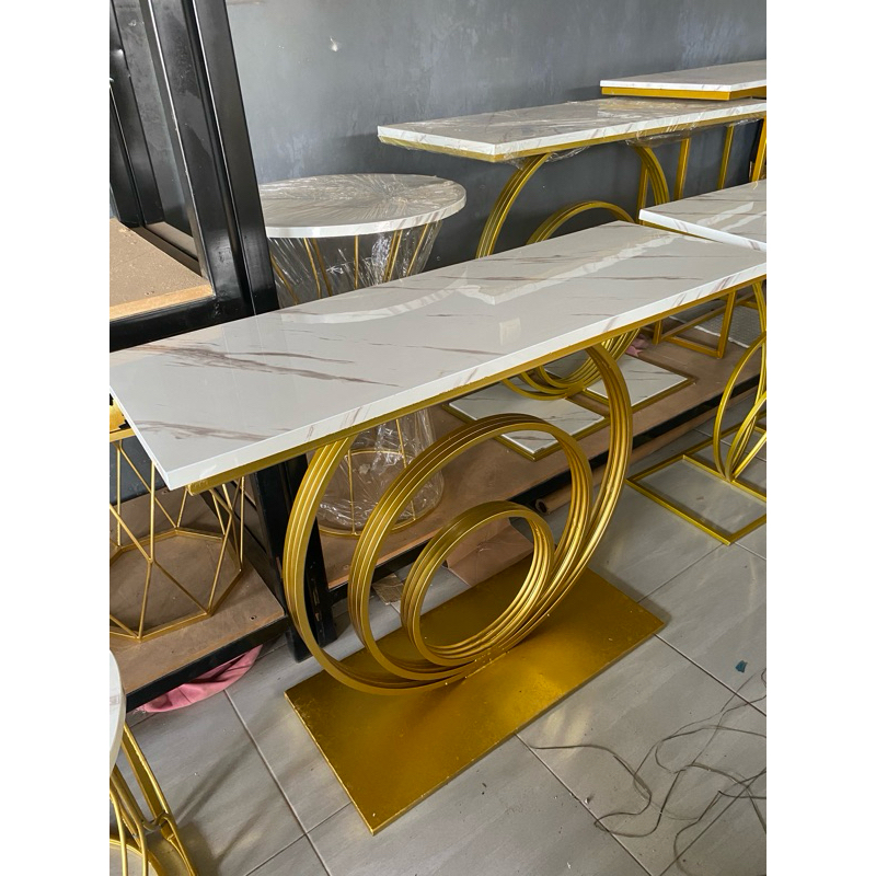 Meja Console Coin | Meja konsol Minimalis estetik Modern Koin | Meja tamu Industrial motif Top Marmer Besi ruang tengah