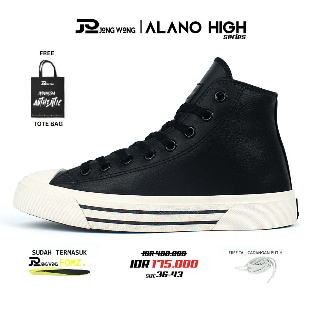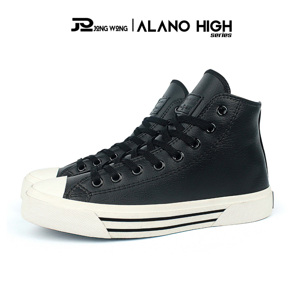 Jong Wong Official-Original Alano Black White High | Sepatu Sneakers Kulit Casual Pria Wanita Unisex
