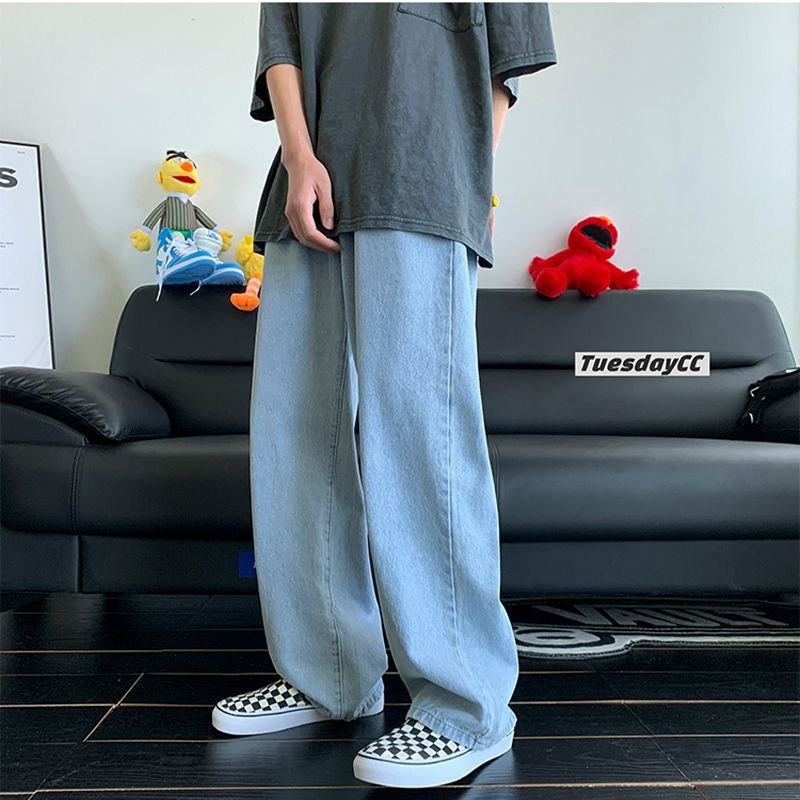 terlaris Celana Jeans Pria Baggy Pants Korean Style Oversize Straight Loose Blue Reguler Fit celana jeans pria