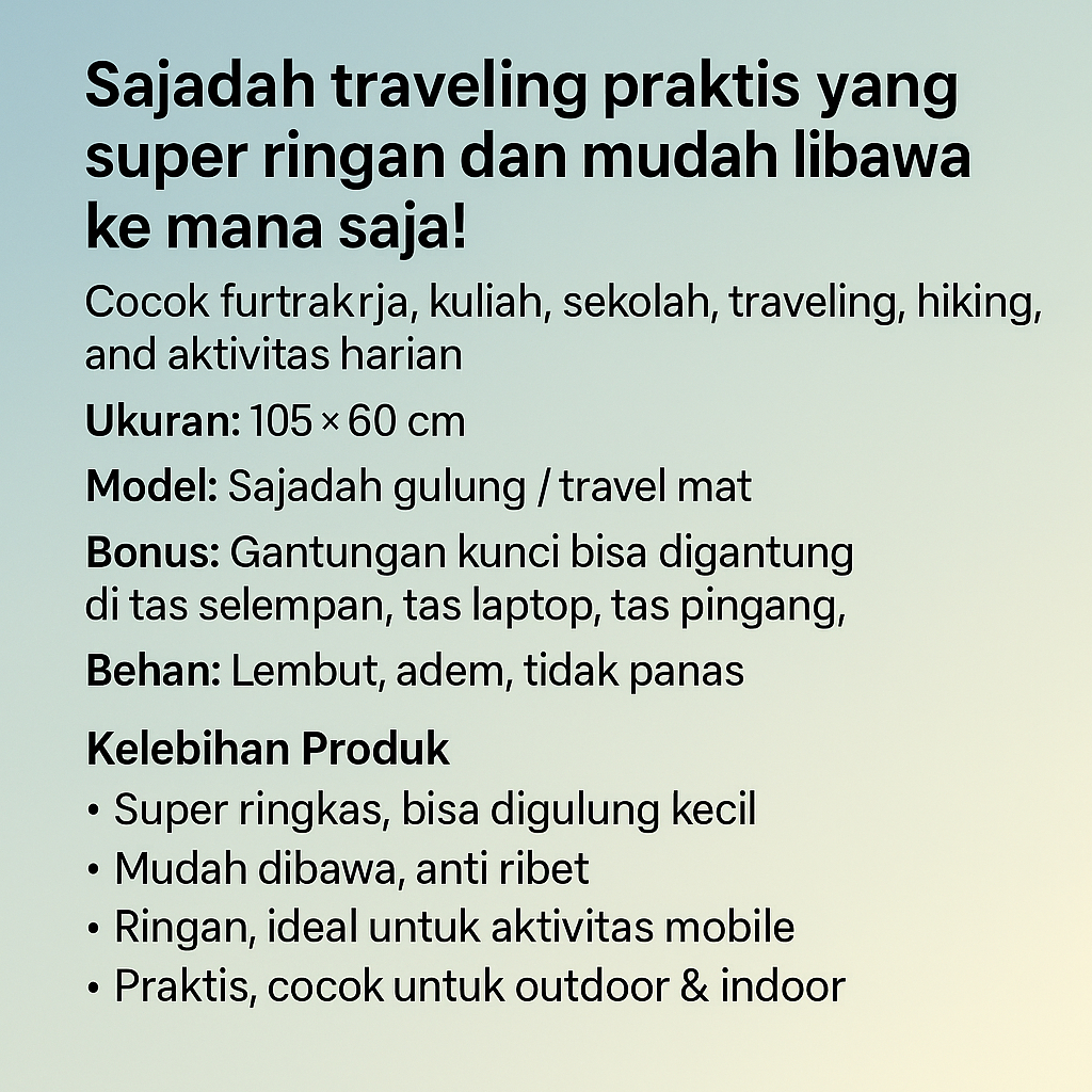 Sajadah Genggam Gulung Traveling Premium | Motif Premium | Cocok Untuk Haji, Umroh Peraktis Bisa Digantung