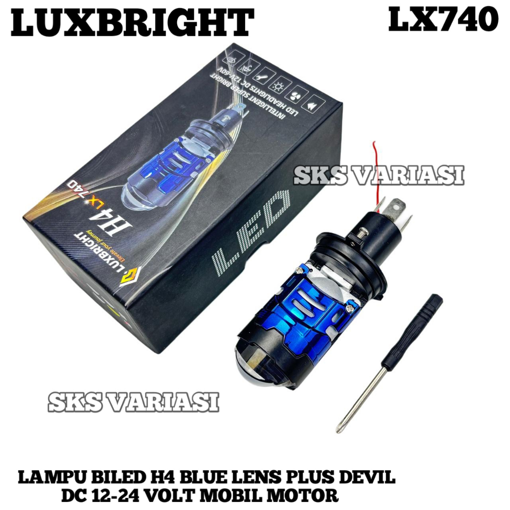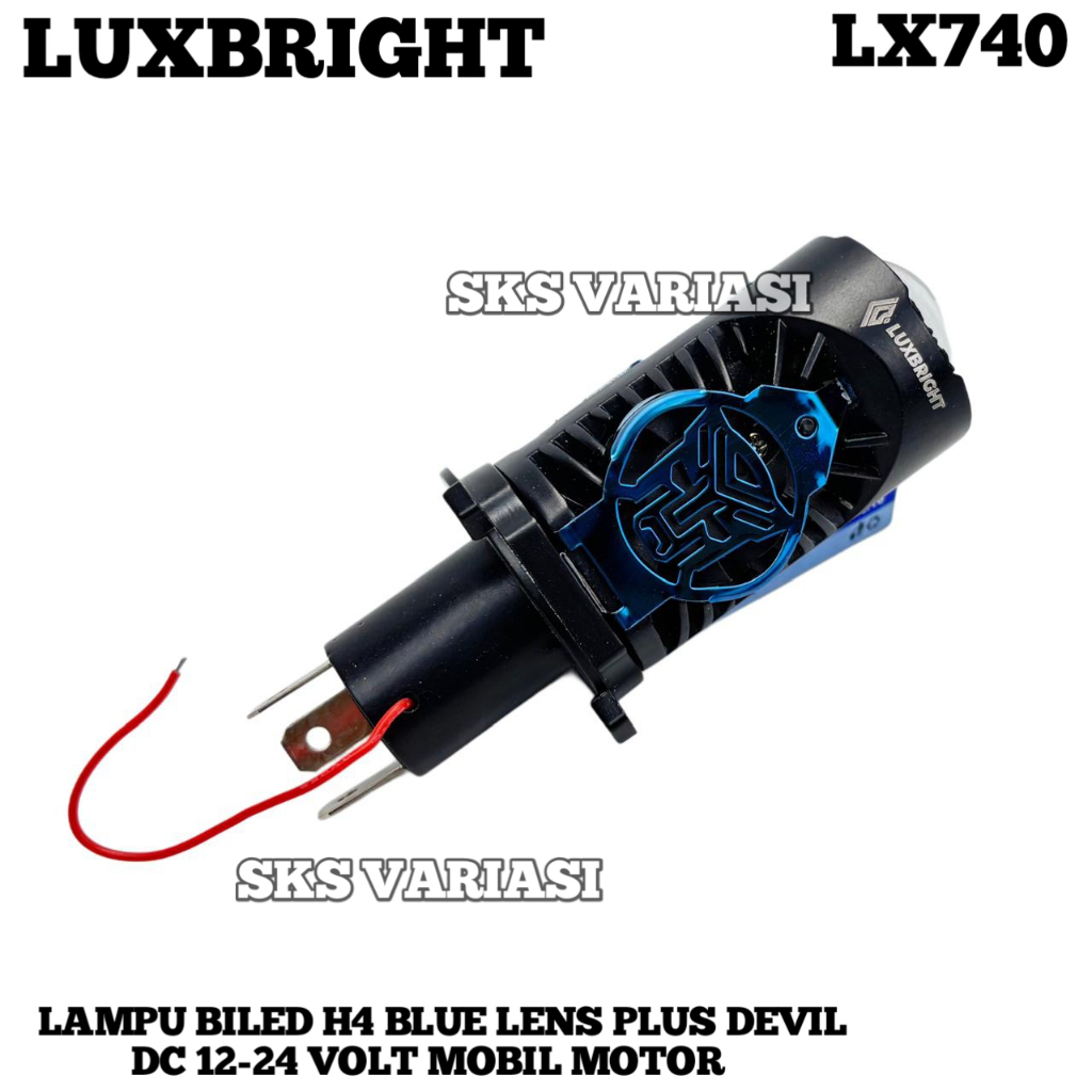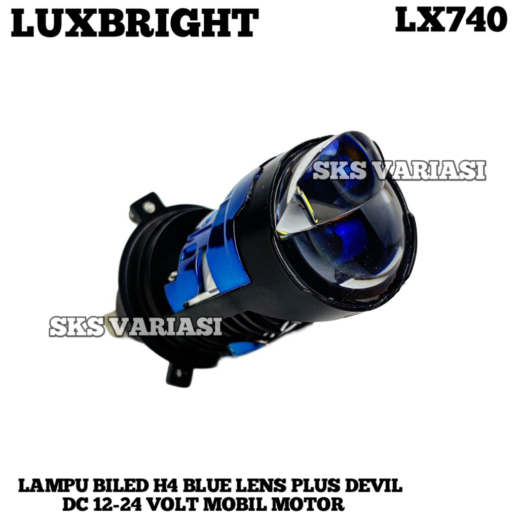 LUXBRIGHT LX 704 - Lampu Utama LED H4 Biled Projector Blue Lens Dual Laser Lens Plus Devil Kipas
