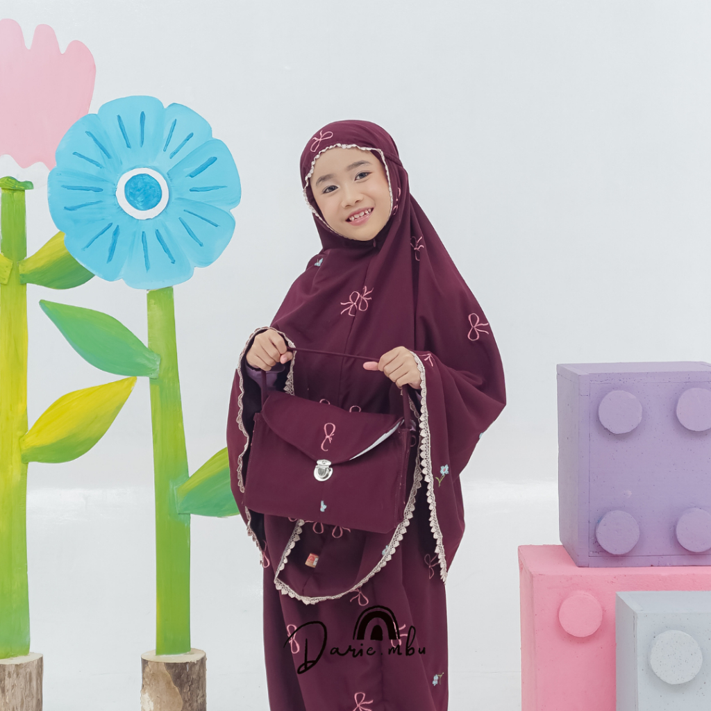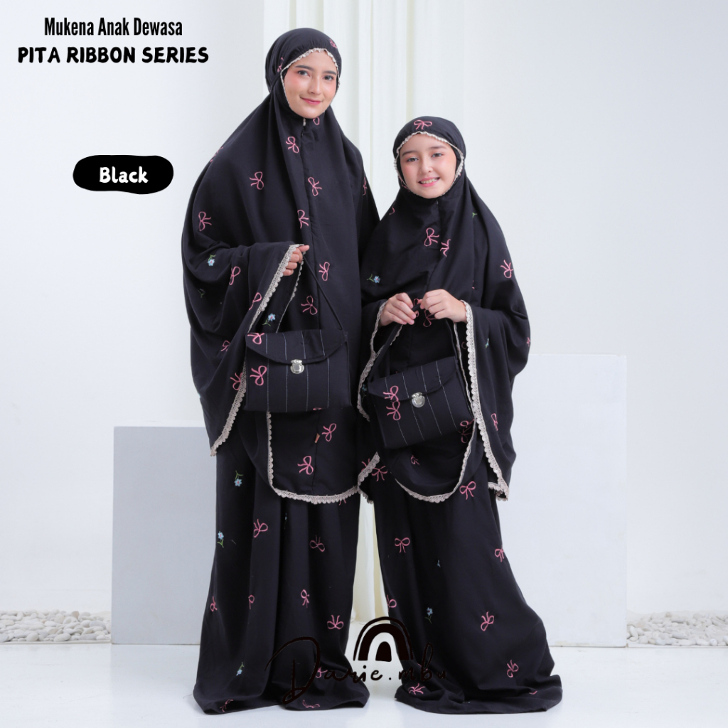 Mukena Anak dan Dewasa 2in1 Katun Bordir Premium Coquette Pita Ribbon Series