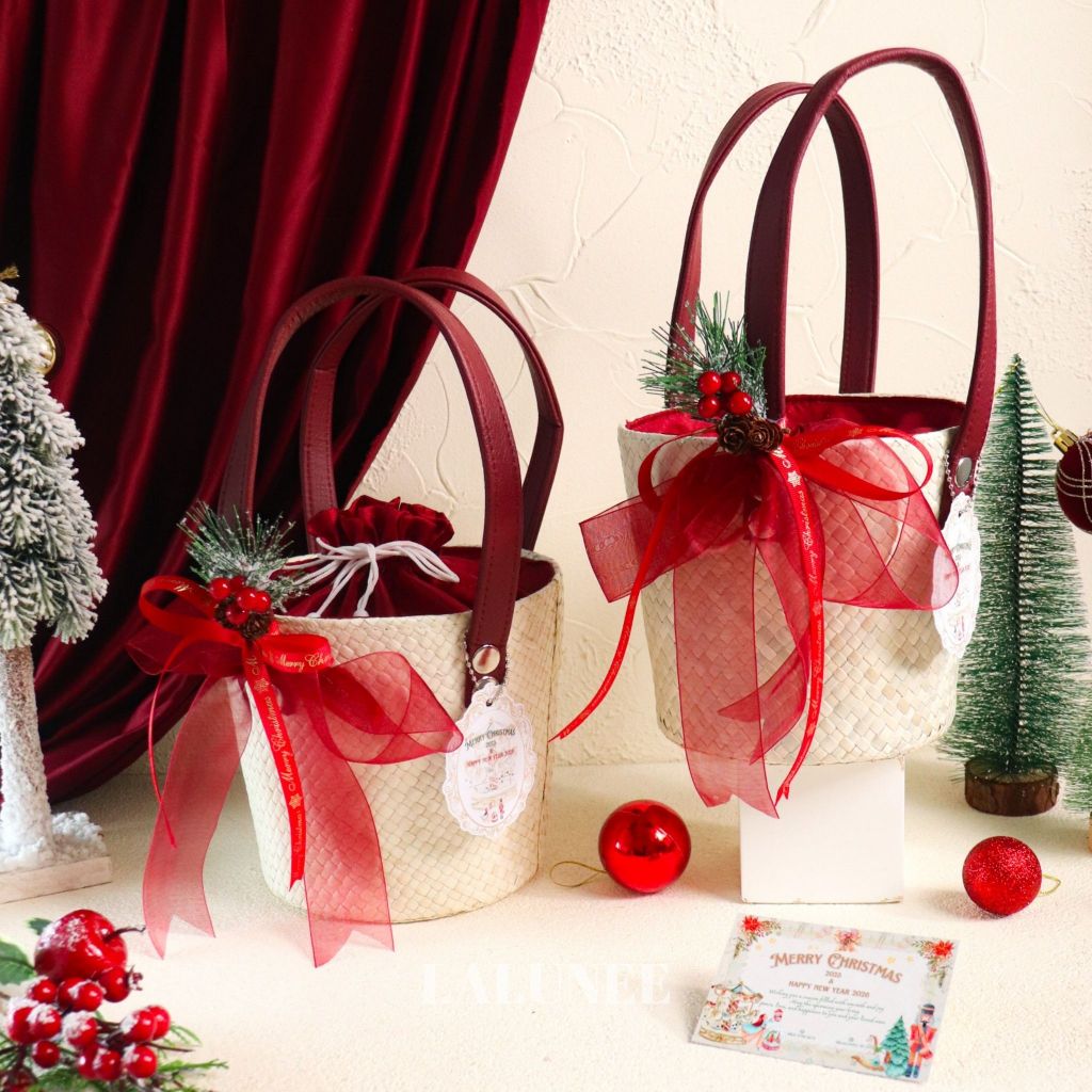 Parsel Tas Anyaman Natal Unik - Hampers Natal Isi Cangkir Set - Set Cangkir Piring Natal - Hampers Keranjang Natal Murah