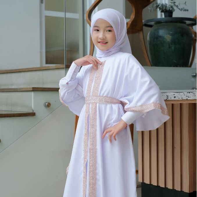 Fatih dan Firra | Gamis Anak Mayra Hitam dan Putih 2 Layer Full Renda Wudhu Friendly 4 - 12 Tahun