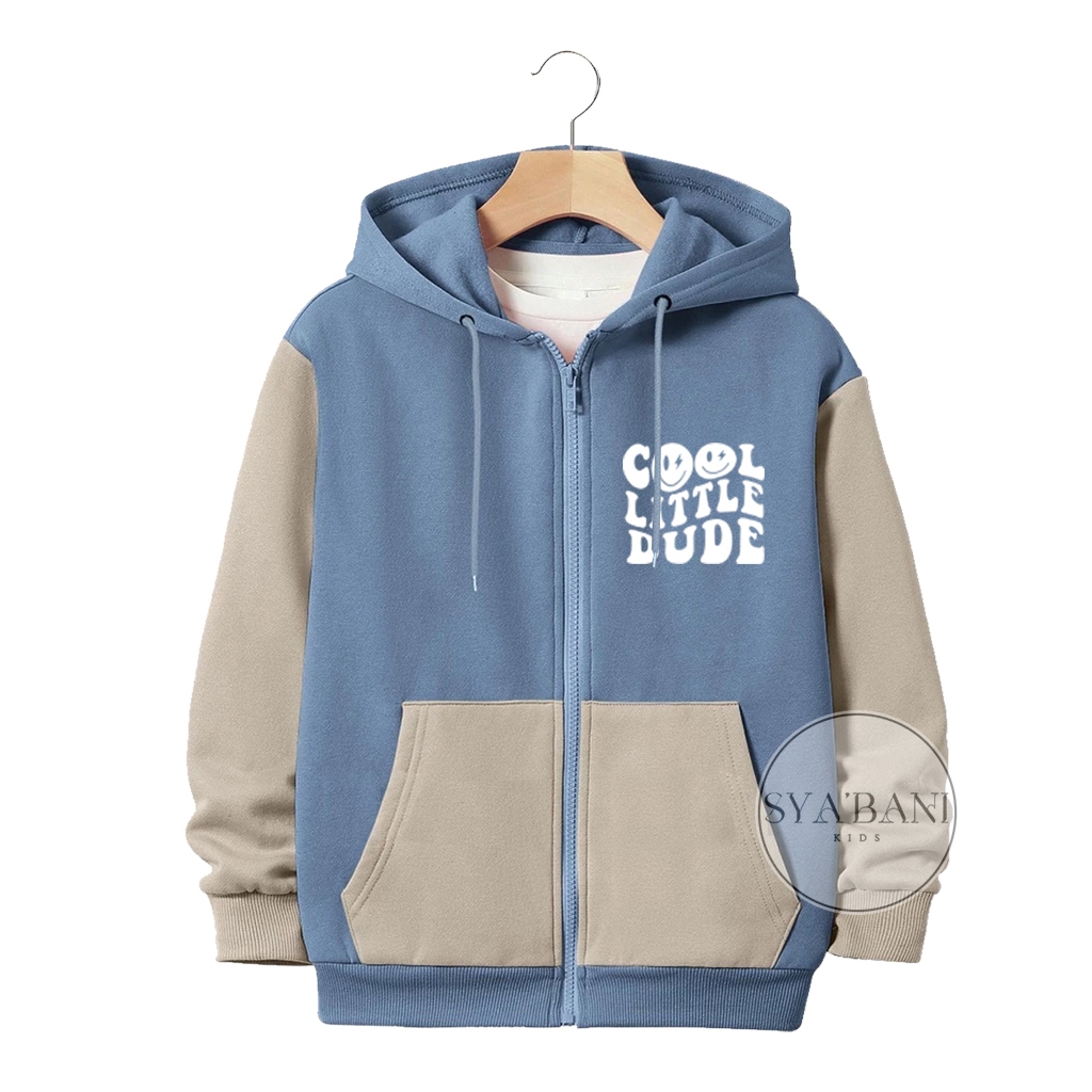Jaket Zipper Anak Laki-Laki Perempuan Usia 2-13 Tahun Sablon Cool Little Kombinasi Fleece