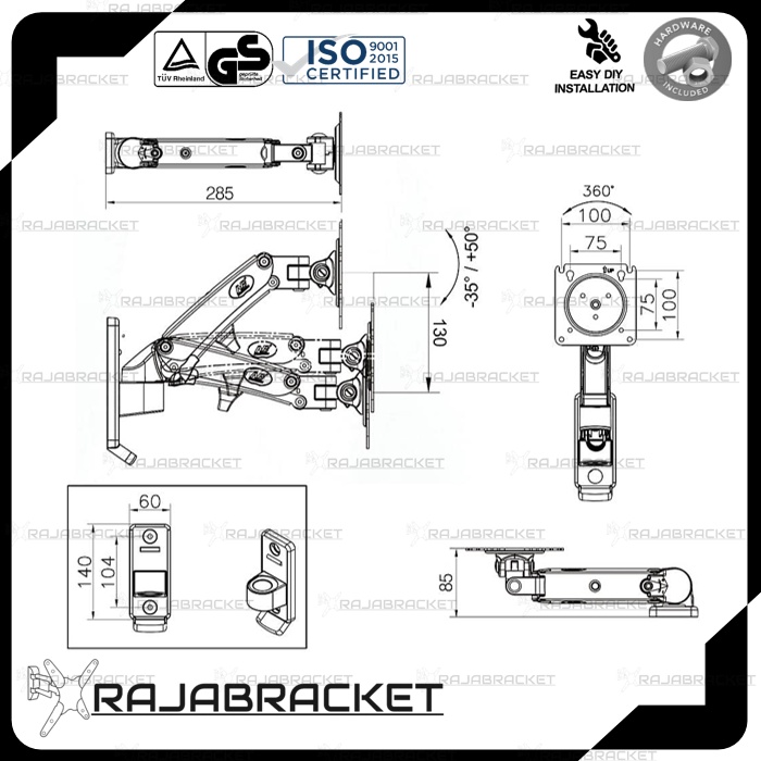 Bracket Monitor 17 19 21 22 24 27 Inch, Bracket Monitor Dinding 17" - 27" Universal Full Motion