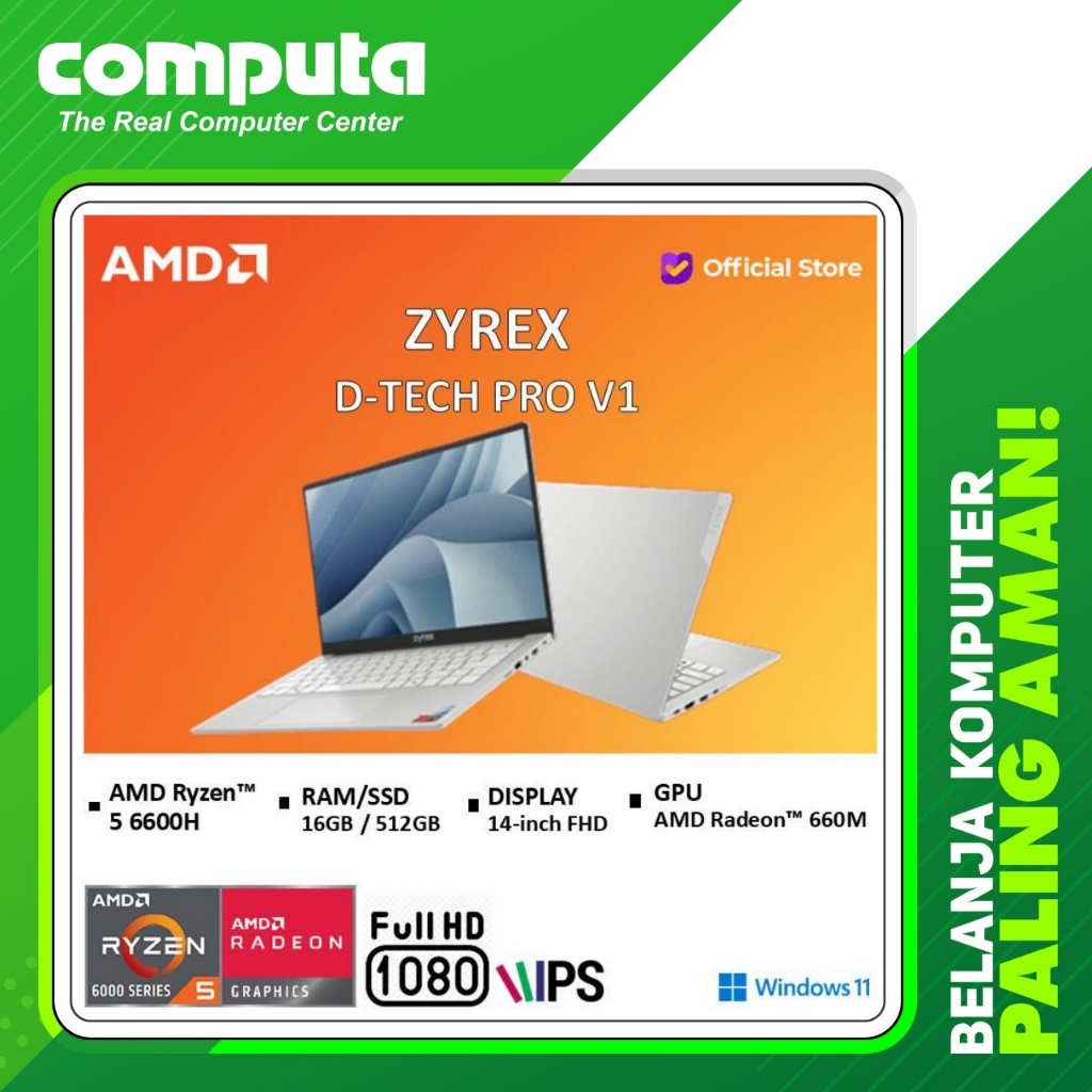 Zyrex D-Tech Pro V1 AMD Ryzen 5 6600H 16GB 512GB W11 14.0Fhd Ips Blit Lan 1Y