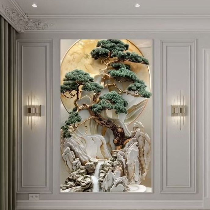 Wallpapper Motif Pohon Bonsai Pegunungan Classic Elegan | Wallpapper Bahan Kertas Vinyl Bisa Custom