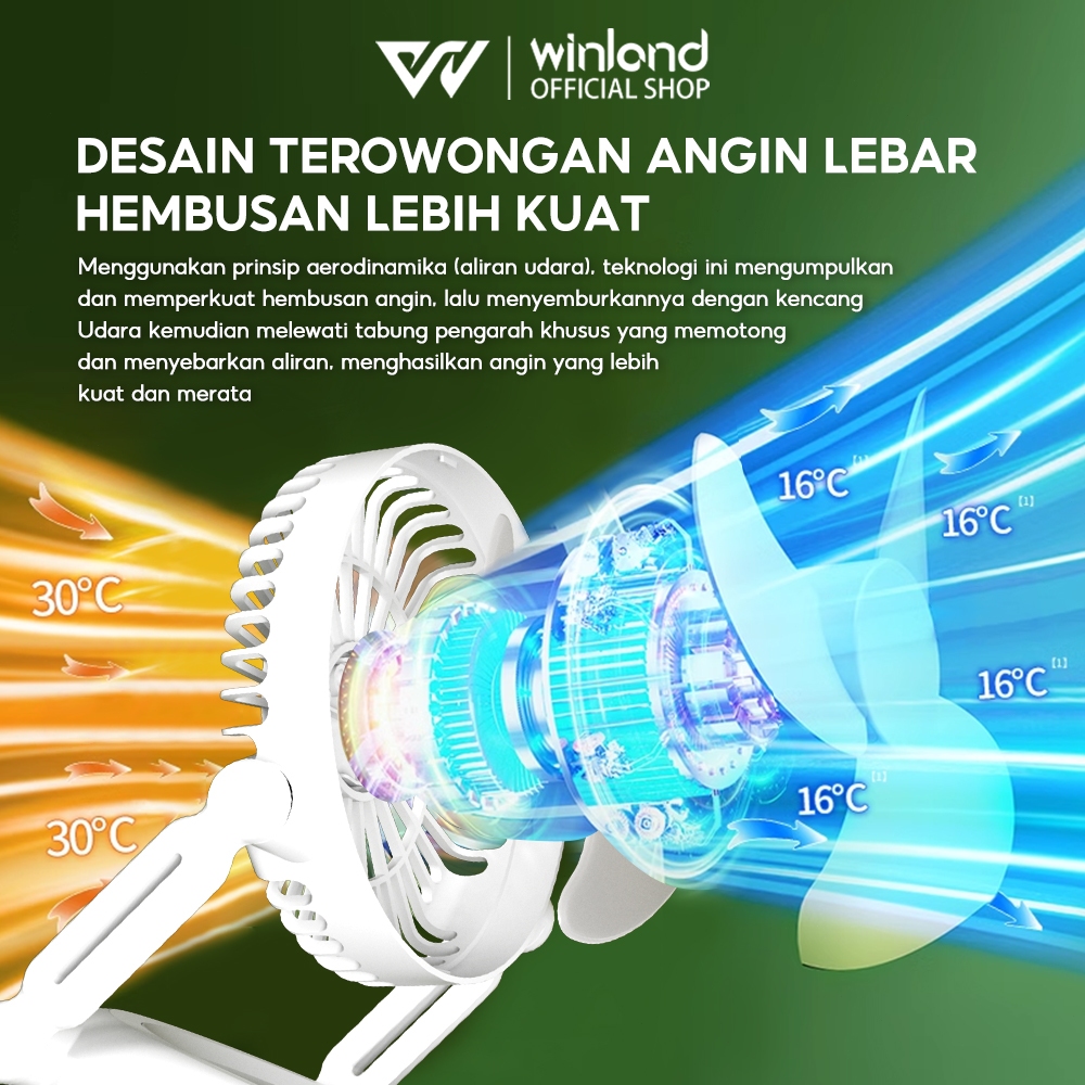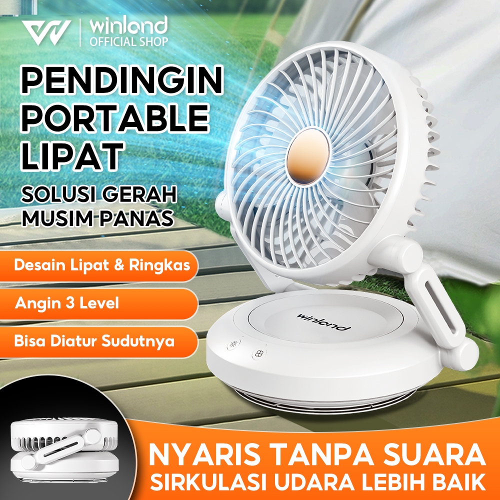 Winland Kipas Angin Mini Portable USB Cas - Tidak Berisik Putar 90° 3 Kecepatan Lampu LED Lipat Baterai 6000mAh untuk Meja/Dinding