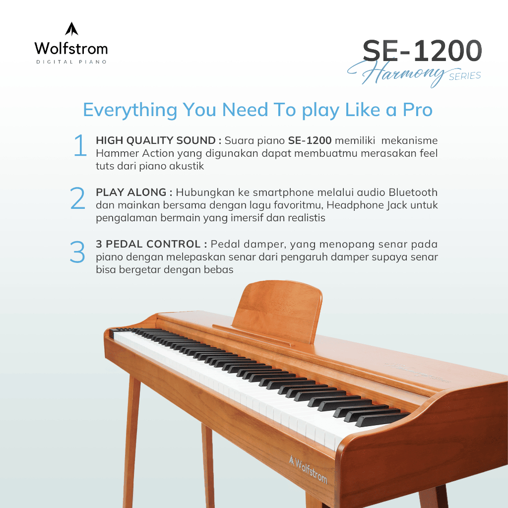 Wolfstrom SE-1200 Harmony Series Hammer Action Keys Digital Piano