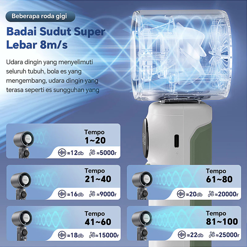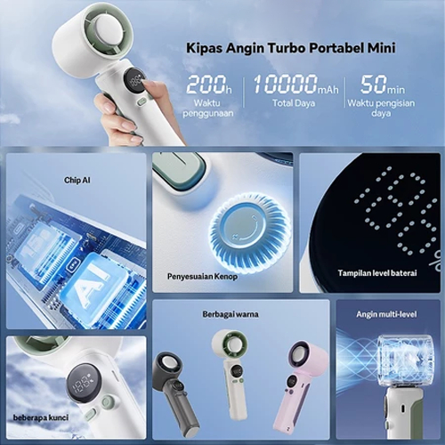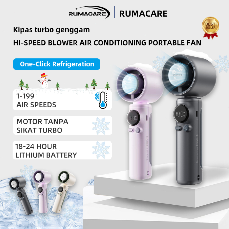 RUMACARE Semi-Conductor Cooling Fan Portable Mini Fan Angin Kencang Wind 199 Gear Wind Speed kipas angin Digital Display senyap kipas angin luar ruangan yang dapat diisi ulang