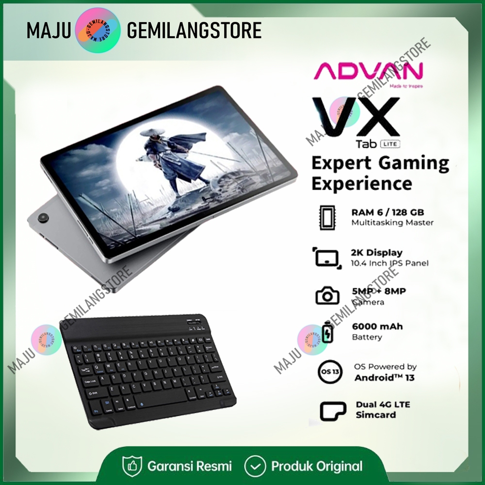 ADVAN TAB VX LITE ram 6GB 128GB Tablet 10.4” Octa Core 2.0Ghz - Dual SIM Card 4G LTE - Garansi Resmi