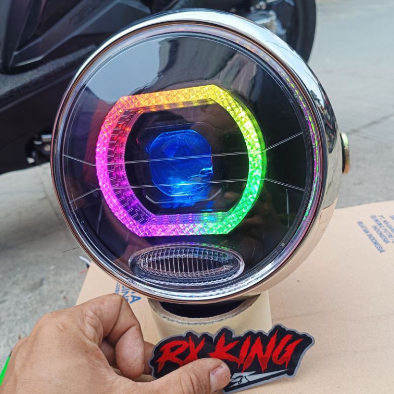 LAMPU DEPAN BILED RXKING NEW BULAT SCORPIO VIXION OLD SET REFLEKTOR RGB CRISTAL 55WATT