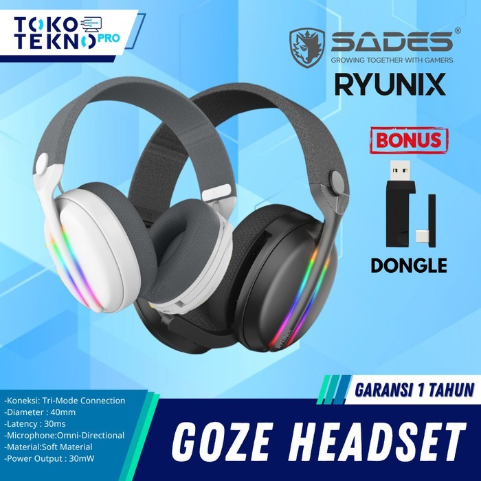Sades Ryunix HX1 / HX-1 Goze Headset Gaming Wireless Bluetooth 3in1 Connection