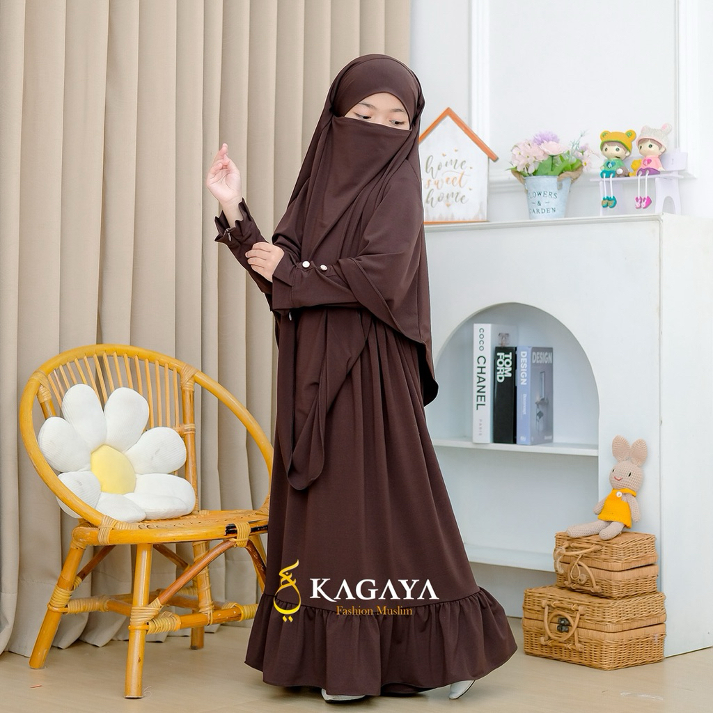 Gamis Anak Perempuan 1 sampai 11 Tahun French Khimar Janna Set by Mousha Full set dengan Cadar