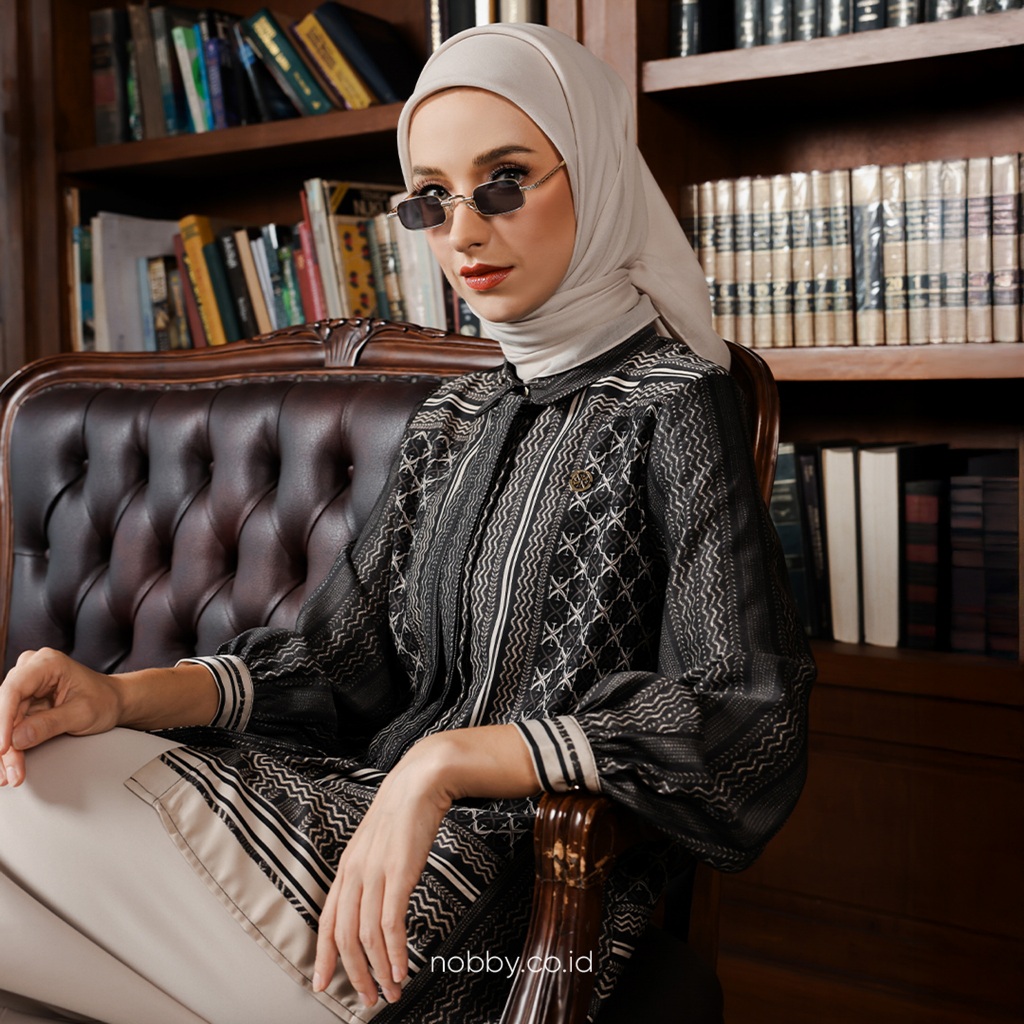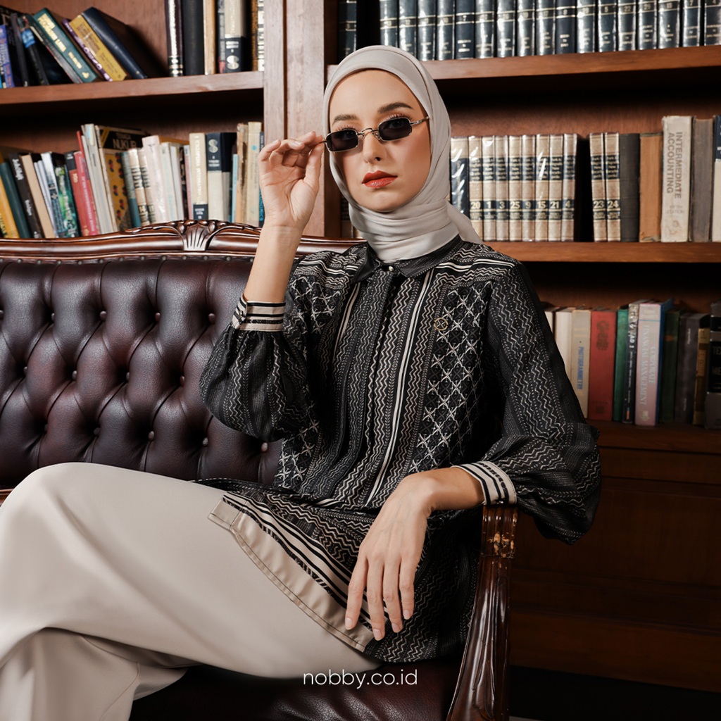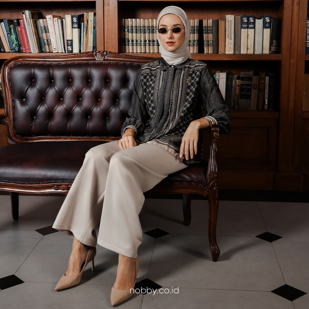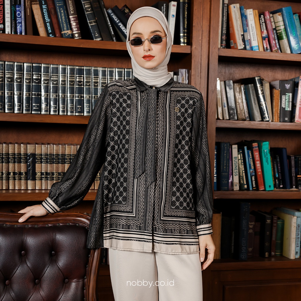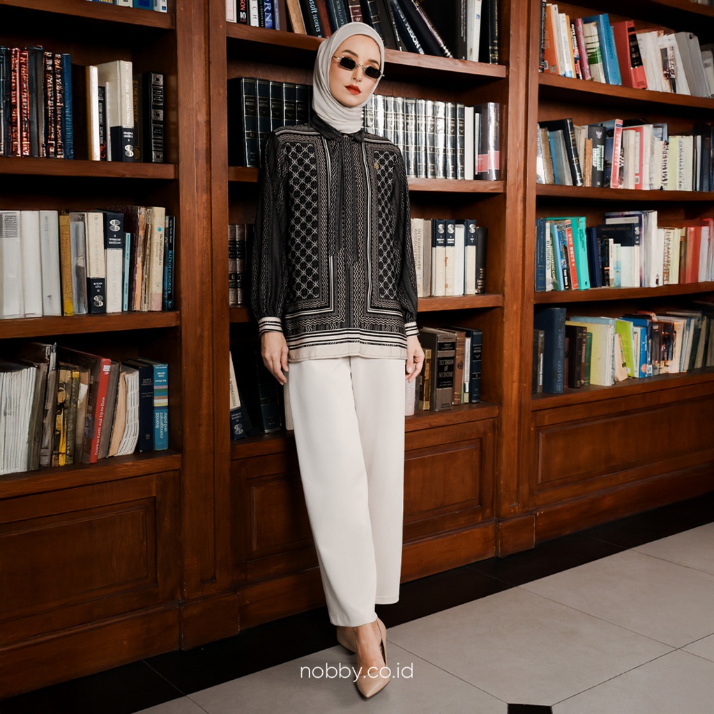 Nobby Kufia Shirt Bahan Soft Polysilk Etnik Modern Atasan Kemeja Lengan Panjang Wanita