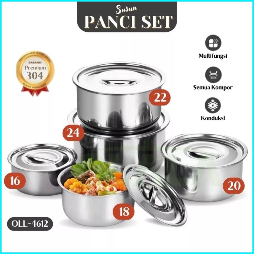 Panci Stainlees Beranak 5in1 Tutup My Home Stainlees Steel Beranak 5 Susun My Home Alat Masak Pancii