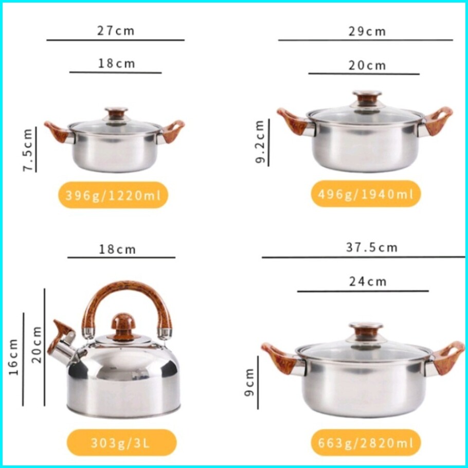 Panci Set 12 Pcs Teko Stainless Cookware Set Tutup Kaca