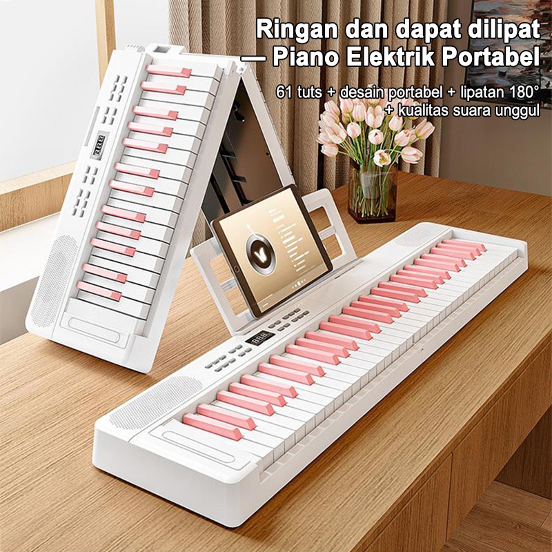 Piano elektronik lipat 61 tuts, khusus untuk dewasa dan anak-anak pemula, portabel, pintar, cocok untuk belajar mandiri di rumah