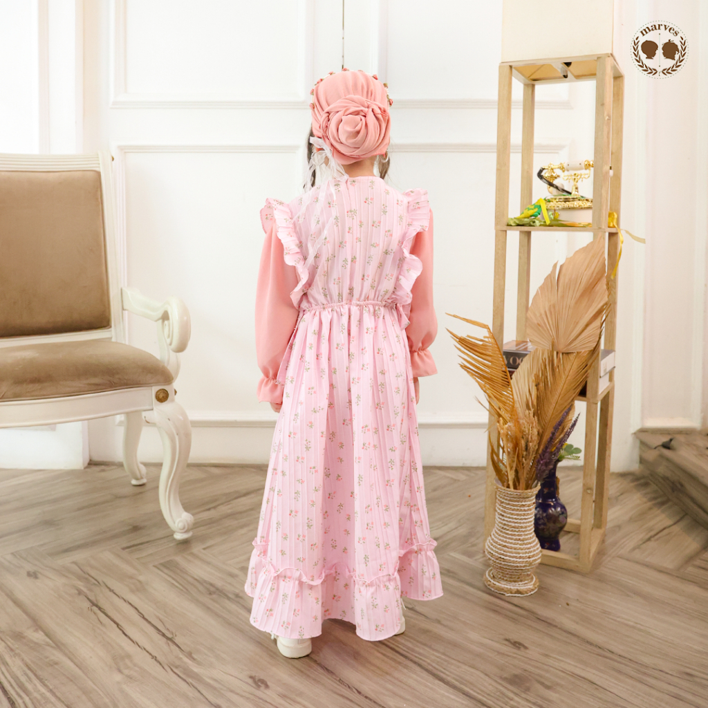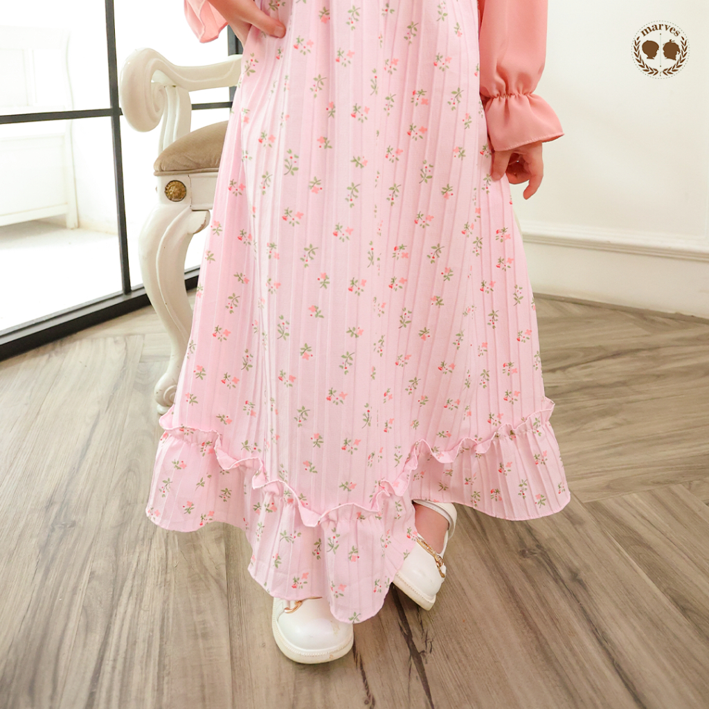 MARVES Gamila Gamis Baju Mu Anak Perempuan Bahan Crinkle Motif Bunga Usia 2 hingga 14 Tahun
