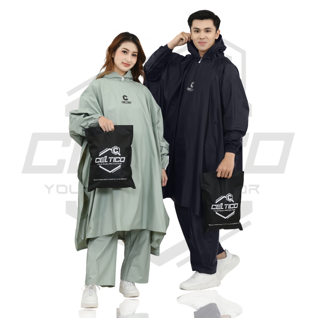 CELTICO Jas Hujan Ponco Kelelawar Celana Pria Wanita Jumbo Bahan Tebal Anti Rembes