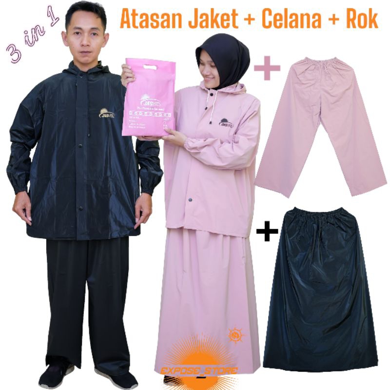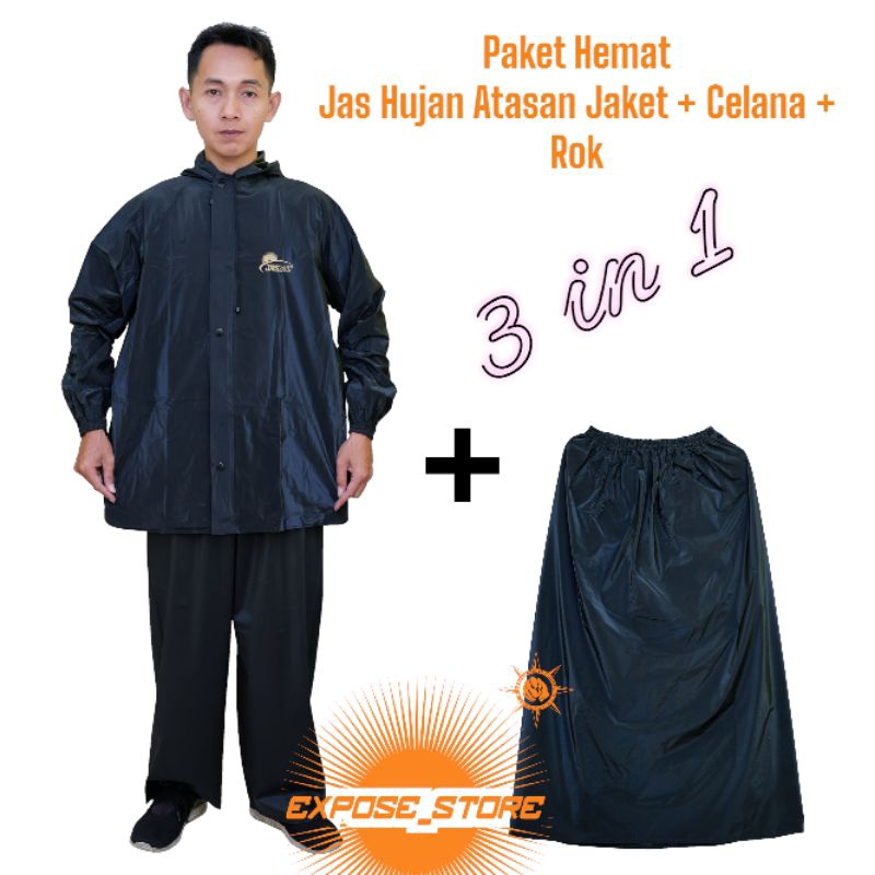 jas hujan setelan atasan baju + celana + rok Bahan pvc waterproof kuat lentur dan anti rembes