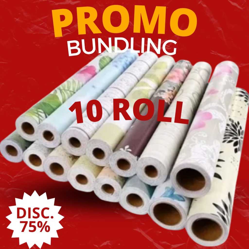 Paket 10 Roll Wallpaper Sticker Dinding - Wallpaper Kamar Tidur - Brand Sooku
