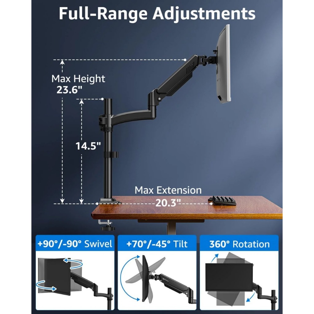 Bracket Monitor Deskmount Gas Spring Oximus P100E Tilt Swivel Rotate