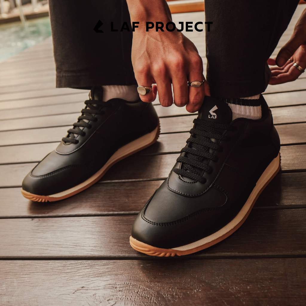 Sepatu Sneakers Pria Hitam Putih Casual Kerja Santai Keren Original Premium Aruna Laf Project