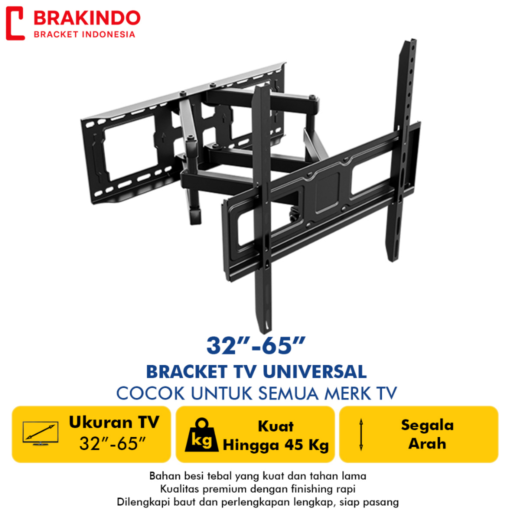 Bracket Tv Led Monitor Full Motion Tv 32-65 Inch Maju Mundur Miring - Bracket Tv, Braket Tv, Breket Tv, Tatakan Tv Dindi