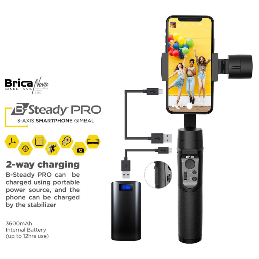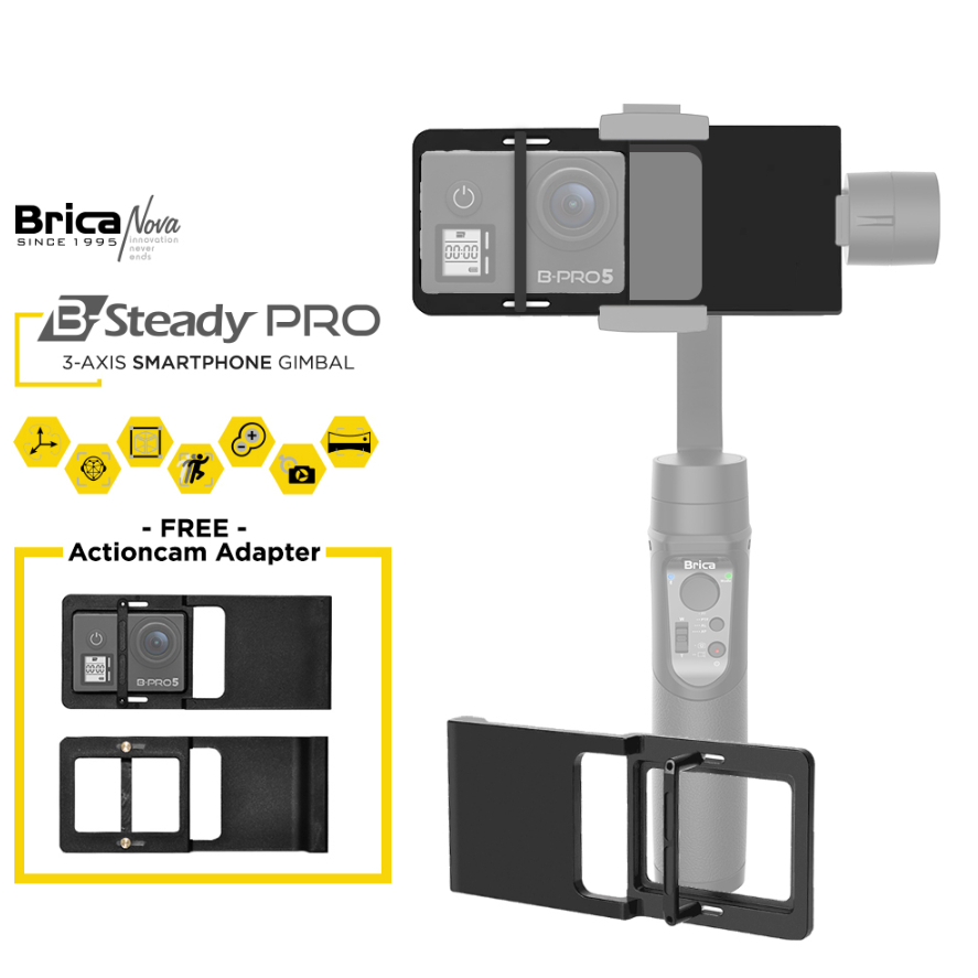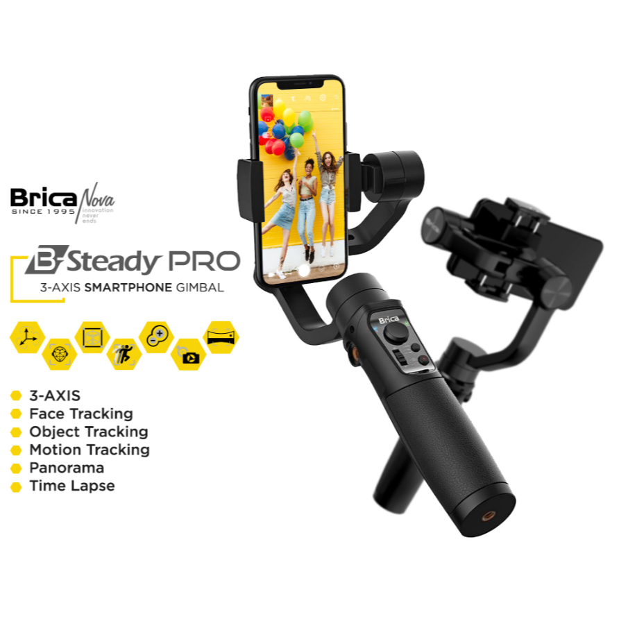 Brica Ai B Steady Pro 3 Axis Holder Smartphone Hp Gimbal Action Cam Stabilizer Kamera Face Tracking